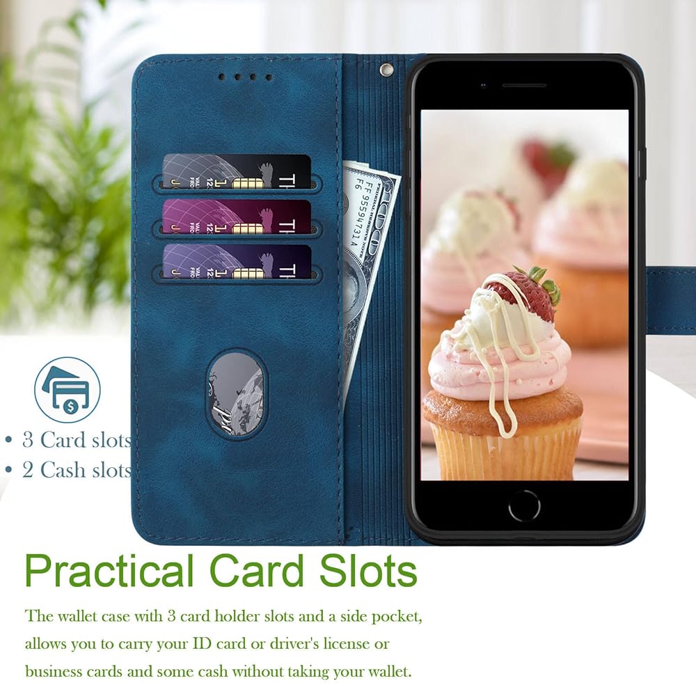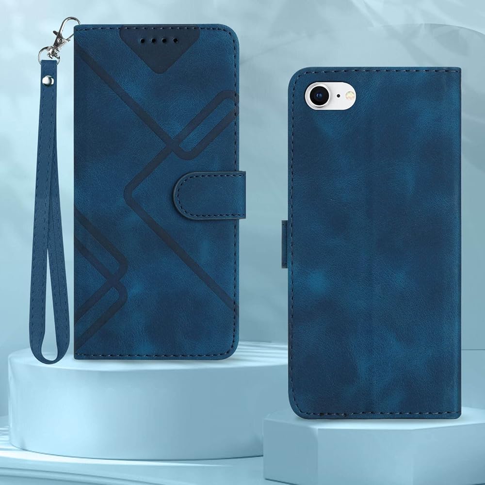for iPhone SE 2022 Case/iPhone SE Case,iPhone 8/7 Case,6/6S Phone Case Wallet Card Holder,Leather Stand Flip Cases,Wrist Strap Magnetic Closure Protector,Shockproof Protective Cover (Blue)