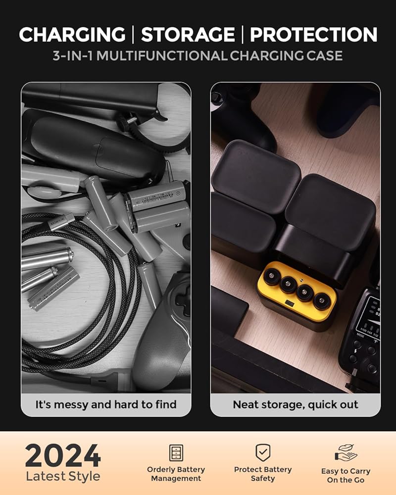 【CHARGING, STORAGE, PROTECTION IN ONE】 imuto AA lithium battery charging case adopts magnetic closure and an independent battery slot design, which not only allows for fast charging but can also be used as a battery storage box for organized battery storage, and provides protection against moisture, dust, pressure, and splashes to ensure battery safety and is easy to carry on the go.