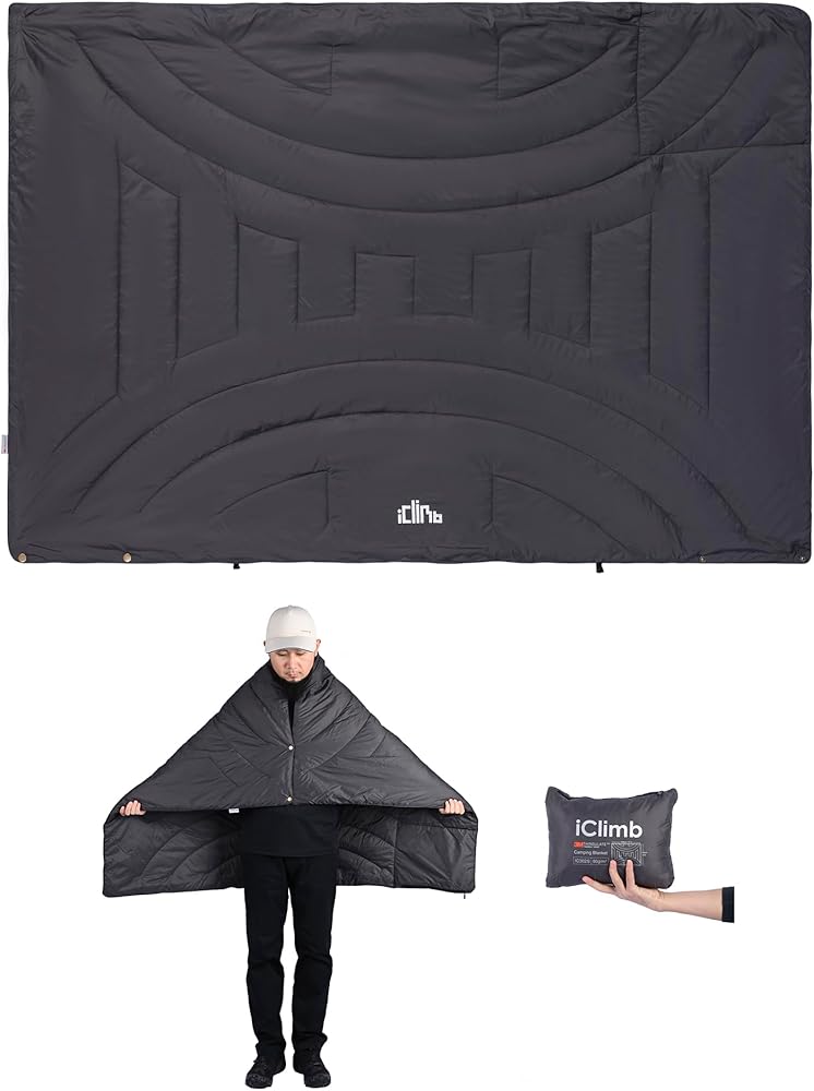 Multifunctional. With the buttons and elastic straps, this blanket can be used as quilt, poncho, shawl, temporary sleeping bag. You can also put two blankets together and make it one two-person sleeping bag. Keeping you cozy while sitting around the fire or on your couch, lying in hammocks, reading books, tailgating, cooking meals. Perfect for camping, backpacking, hiking, mountaineering, traveling, lounging, picnics, beach trips, concert events, airplane trips, and other outdoor activities.