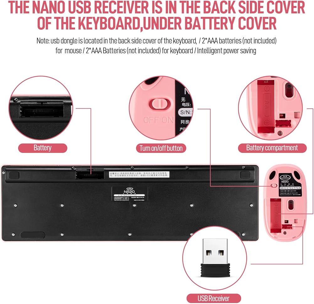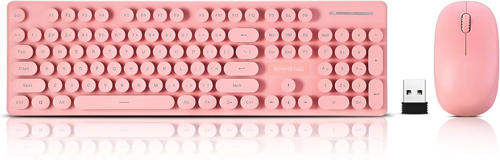 Wireless Keyboard and Mouse Combo, Full Size Compact Quiet Wireless Keyboard and Mouse Set 2.4G Ultra-Thin Sleek Design for Windows, Computer, Desktop, PC, Notebook, Laptop,Round Keys Lipstick mixed with punk