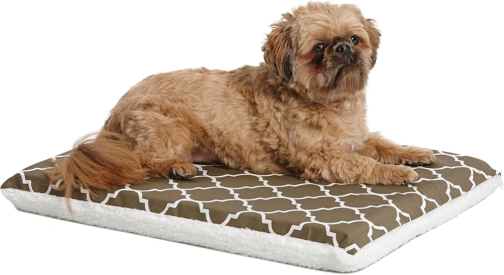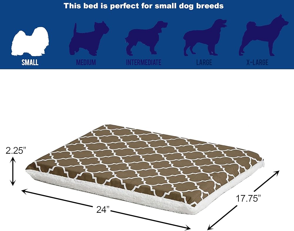MEDIUM DOG BED in brown geometric print is ideal for small dogs w/ an adult weight of 26 - 40 pounds | Dog bed measures 30L x 21.25W x 2.32H inches & fits most 30-inch long metal dog crates