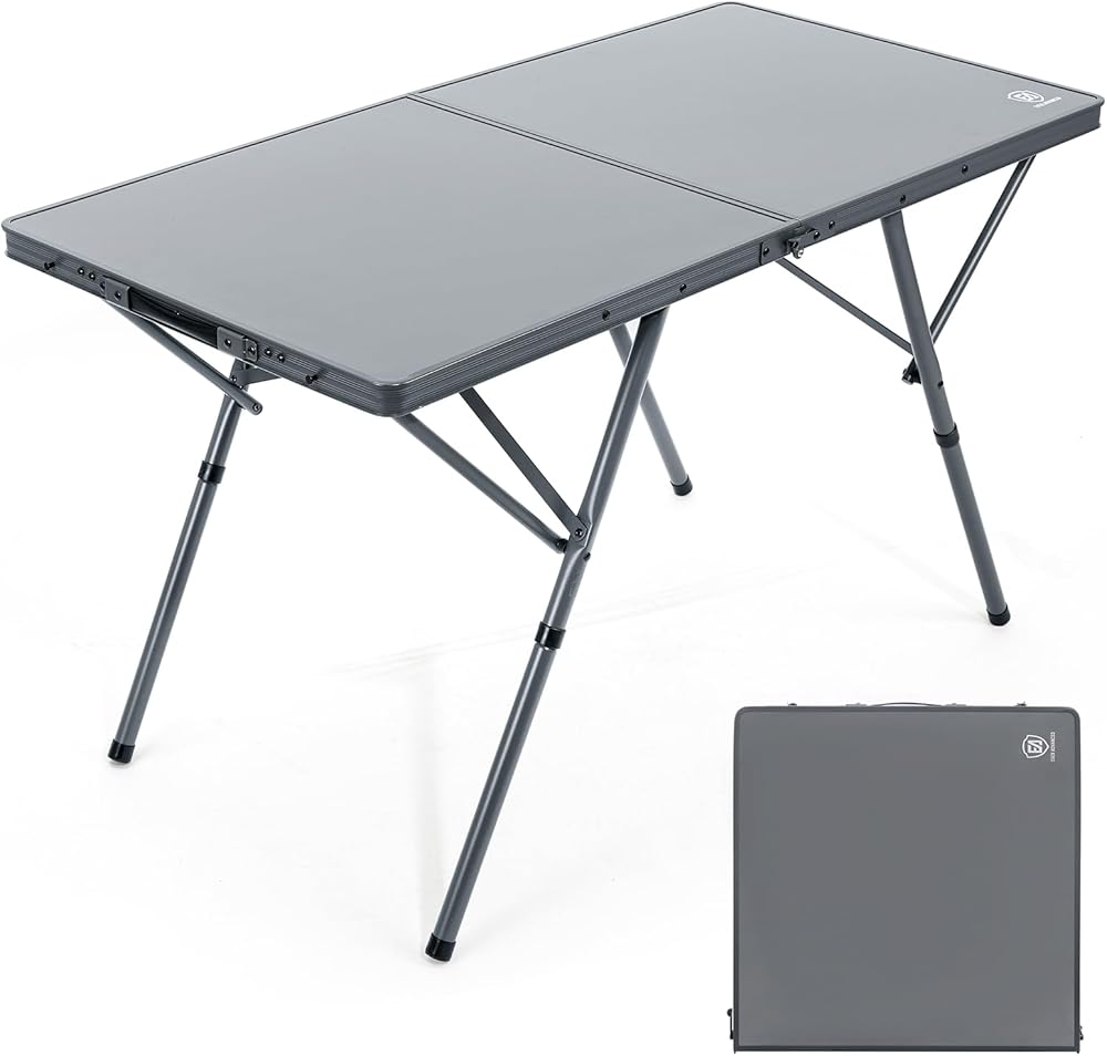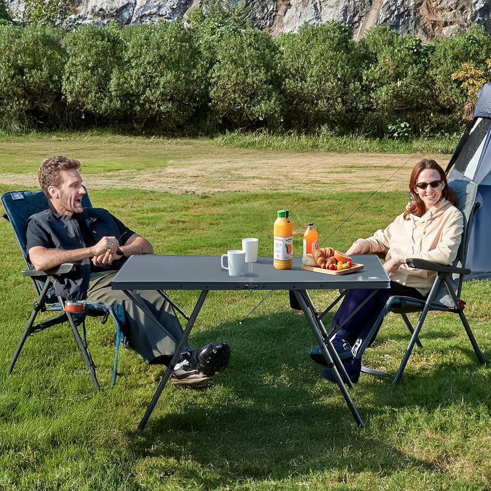 EVER ADVANCED Large Camping Table for 4-6 Person, Portable Folding Aluminum Table with Carrying Handle, Suitable for BBQ, Picnic, Camping and Indoor Use, Support up to 130LBS, Gray