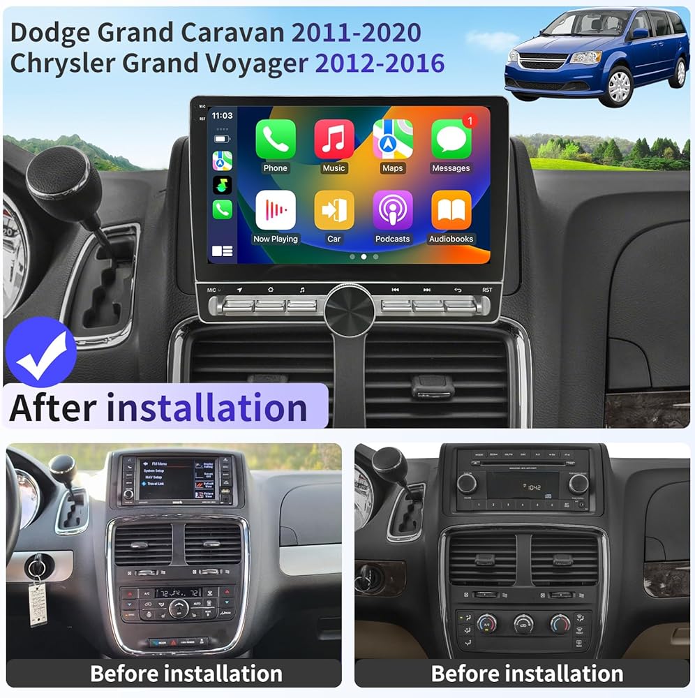 【Apple CarPlay & Android Auto with Voice Control】This upgrade Dodge Grand stereo built-in wireless and wired Apple CarPlay, and built-in USB connection Android Auto; Support voice control, make hands-free calls, send/receive SMS, and listen to music/podcasts in CarPlay or Android Auto while you focus on driving. You can effortlessly activate Siri or Google Assistant by voice control.