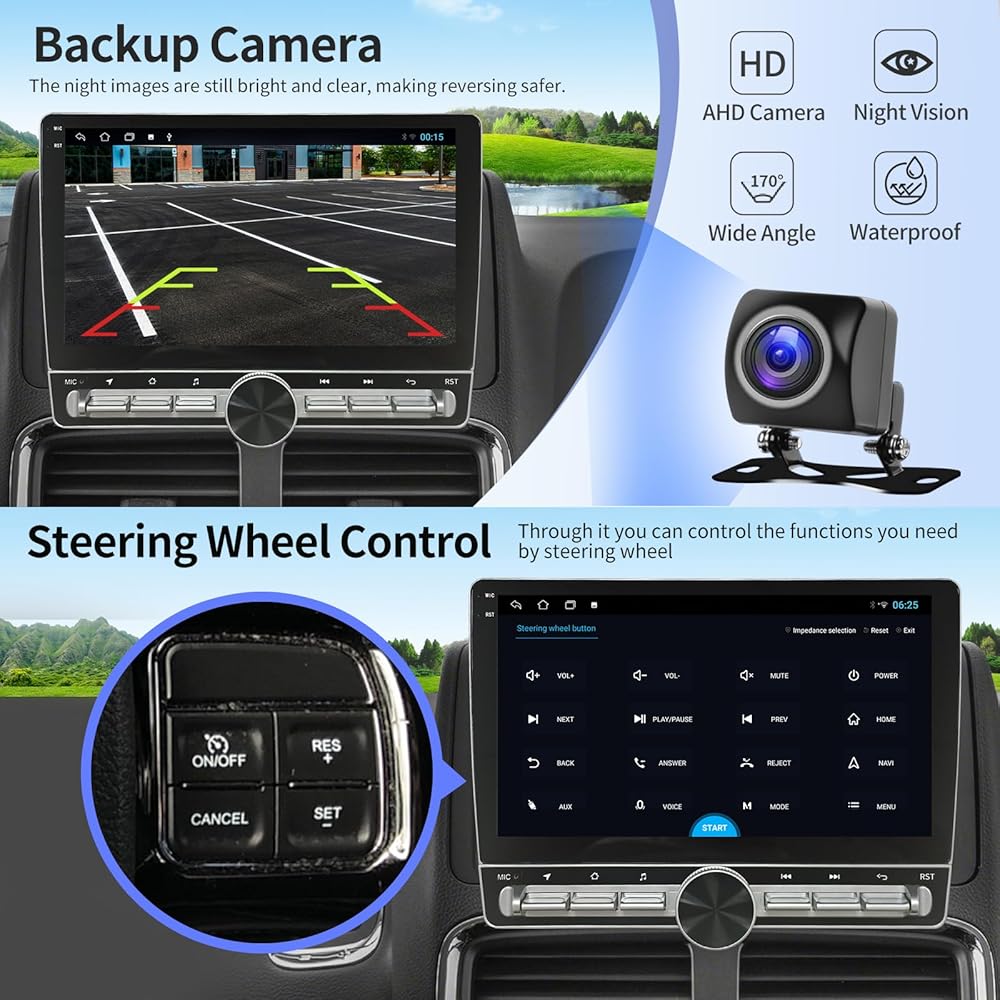 【Steering Wheel Control & Mirror Link & Backup camera】This Dodge Grand Caravan radio with the steering wheel controls function, you can make calls, adjust the volume or change songs more safely. Support Mirror Link, phone link can be used when connect the USB, the car radio will be realized all your phone functions. AHD backup camera is equipped with night vision, whether it is raining or foggy during the day or night, you can see the road conditions clearly through multifunctional player.