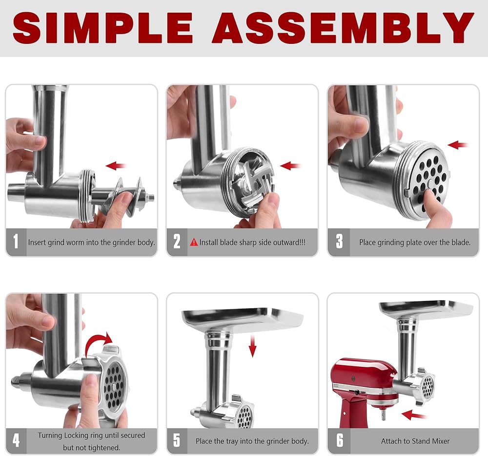 Perfect Meat Grinder Attachment for KitchenAid Mixers: As an avid KA mixers' fans, the meat grinder attachment has become an indispensable tool in your kitchen. The metal meat grinder attachment for KitchenAid Stand Mixers all models, elevating your cooking experiences to new heights with its exceptional performance and versatility. It's a thoughtful present that keeps on giving