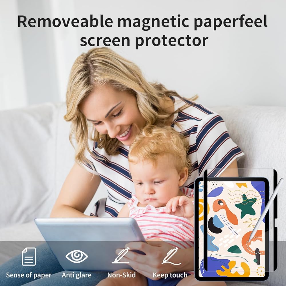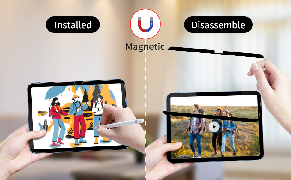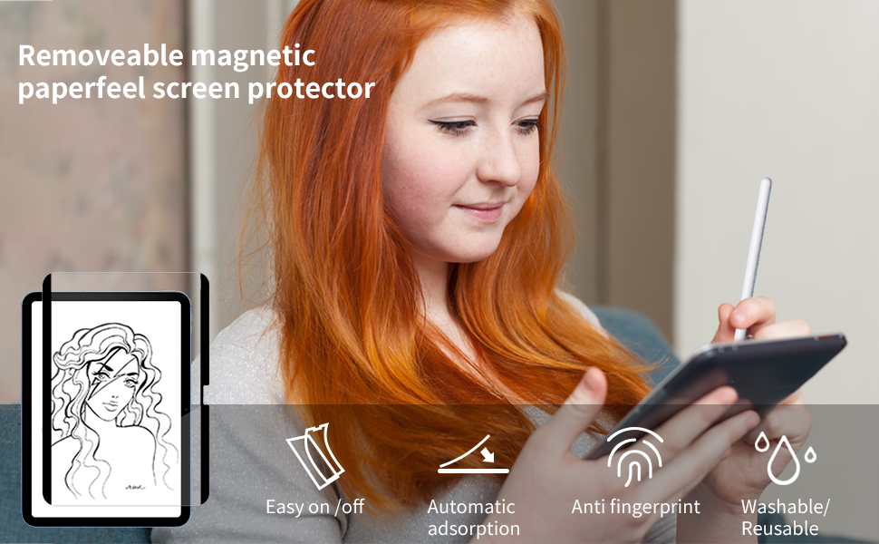 [Detachable & Reusable]The screen protector made of matte magnetic paperfeel can be taken off and put back on, guaranteeing a smooth installation without any bubbles, and can be easily removed when watching TV or playing games. It can also be effortlessly attached for writing or drawing.