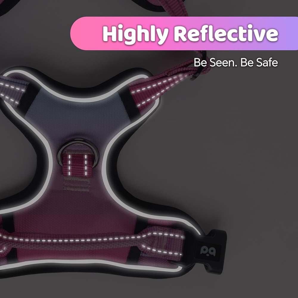 Safe & Comfortable: The surface material of this harness is made of Oxford cloth, which is strong and durable. The front chest and back is padded breathable air mesh and health cloth with soft cushion. It is soft and comfortable, and will not hurt the dog's skin, but also better protect the dog's front chest, so that your dog will not feel pulling when walking or running.
