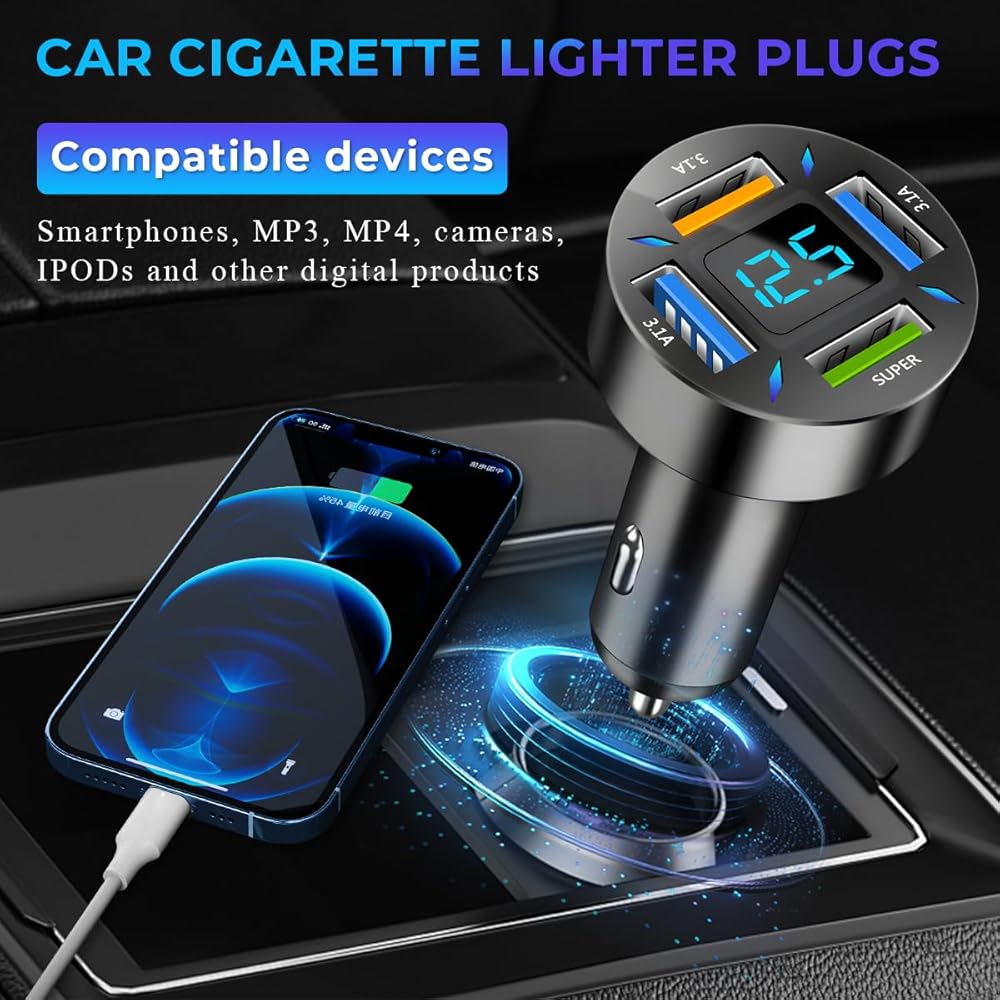 【Safety in Use】: This car charger has a built-in management chip that intelligently shunts the current, charging quickly without damaging your phone. It has five layers of circuit protection, which will not create safety hazards when multiple charging ports are working at the same time.