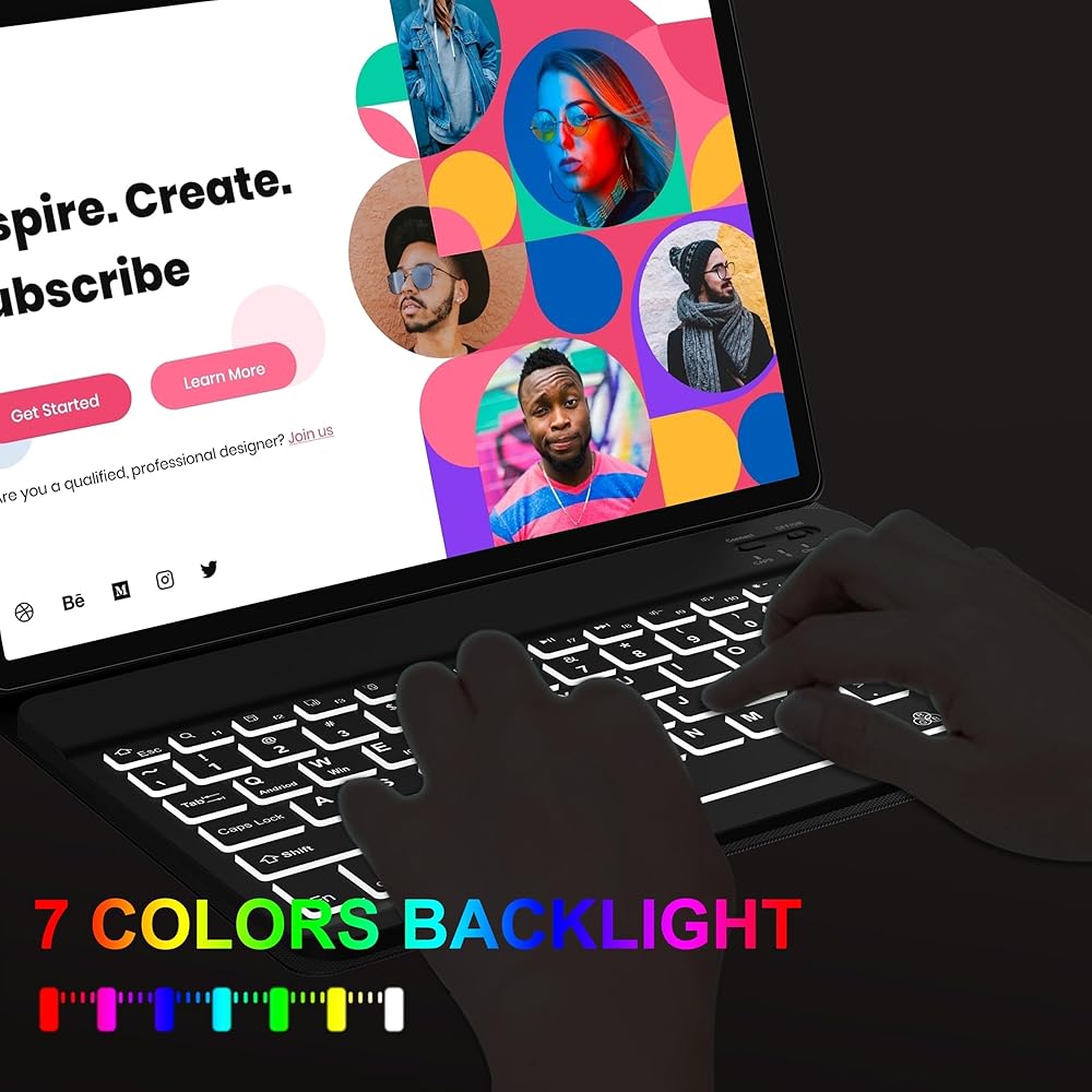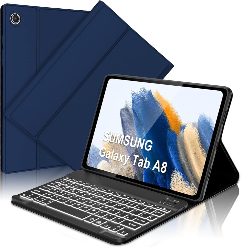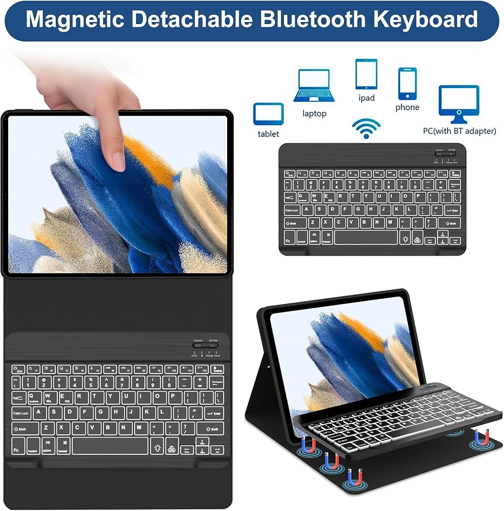 Keyboard Case for Samsung Galaxy Tab A8 10.5 inch 2022, 7 Colors Backlit & Magnetic Detachable Bluetooth Keyboard, Slim Soft Folio Tablet Cover Case for Tab A8 SM-X200/X205/X207, Auto Sleep/Wake Up