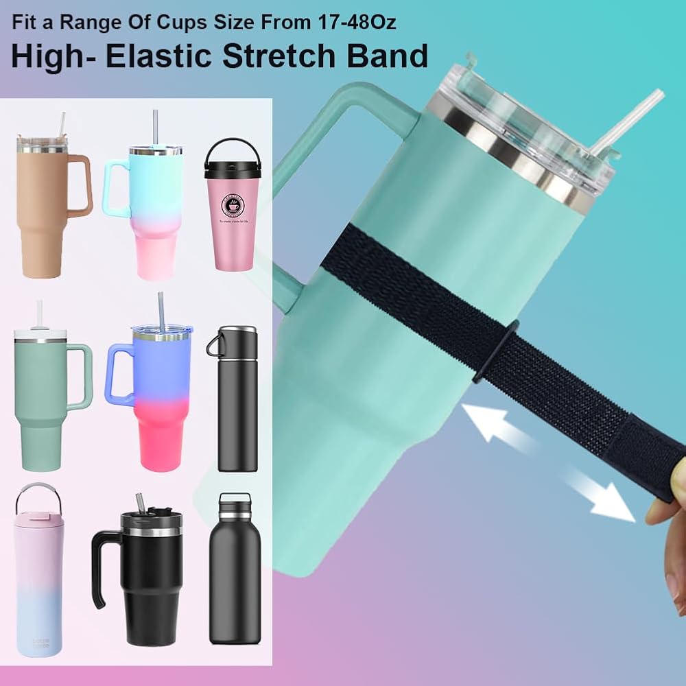 Compatible with Stanley: This water bottle pouch (tumbler not included) flawlessly compatible with Stanley Quencher, IceFlow, and Adventure tumblers. Its robust elastic band flexibly adjusts to accommodate various tumbler sizes, ideal for 17oz-48oz water bottles.