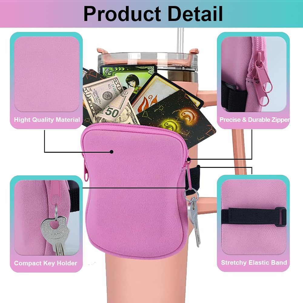 Stylish & Functional: This water bottle bag expertly combines style with practicality. Its minimalist design, combined with a chic color, especially match your favorite color for Stanley Tumbler, captures attention instantly. Eliminate the hazard of misplacing essentials such as keys, wallet, and phone while exercising.