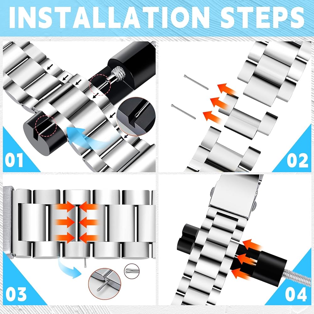 【Easy Adjustment】Suitable for wrists from 5.5-8.7 inches (140mm-221mm). With the removal tool included, easy to install and remove. Please refer to the details on the page to follow the correct steps to remove the watch chain, so as not to damage the watch band.