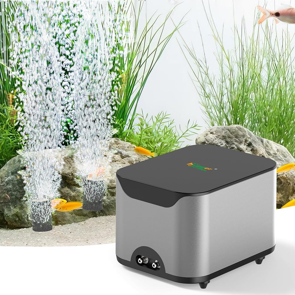 hygger Aquarium Air Pump 10W 285GPH Ultra Quiet Powerful Fish Tank Air Pump with Adjustable Knob Dual Outlets Air Stone Fish Tank Bubbler Aerator for Up to 600 Gallon Tank