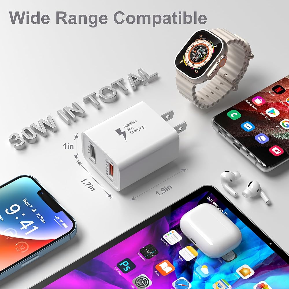RELIABLE AND SAFE CHARGER BLOCK: Multi-protection system against over charging, over-voltage, over currents, and short-circuit. Protect the safety of you and your devices. The flame-retardant PC casing is super lightweight and durable so the wall charger can withstand scratches, bumps, and drops.