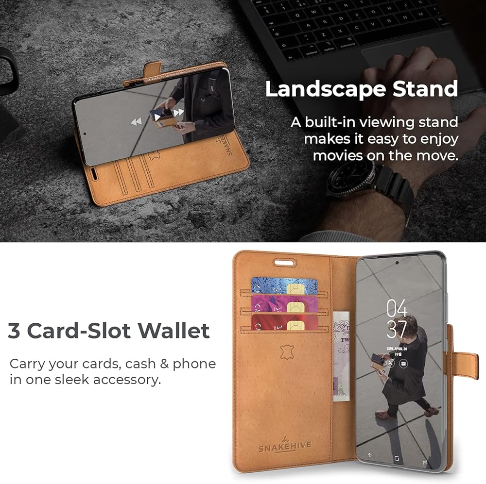 SNAKEHIVE 12 MONTH WARRANTY ✅: A flip case that's built to last - includes Snakehive's 12 month warranty & 30 day money-back guarantee with this leather wallet case with card holder