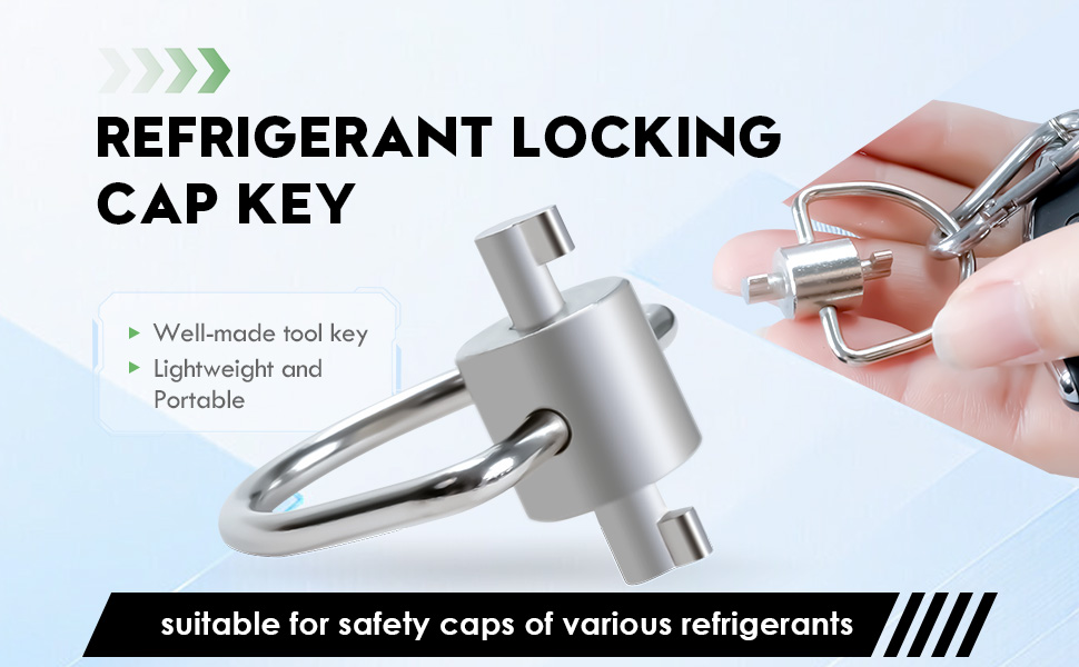 Multi Key Tool: The refrigerant locking cap key is universally compatible and suitable for safety caps of various refrigerants, and is equipped with multiple key interfaces for different HVAC systems. The universal locking cap key can be used to install and remove locking caps, for HVAC 410A and R22 refrigerants.