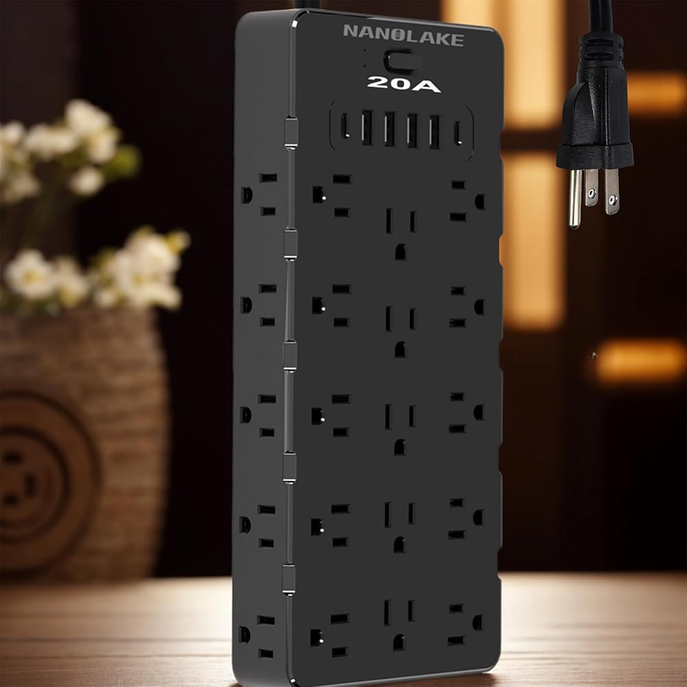 Versatile and Space-Saving Design: Our power strip features an easy-to-mount design with two keyhole slots and two hanging holes, along with a 45° angled flat plug, making it perfect for tight spaces.All products supplied by NANOLAKE through online shop on all Amazon marketplaces are covered by liability insurance.