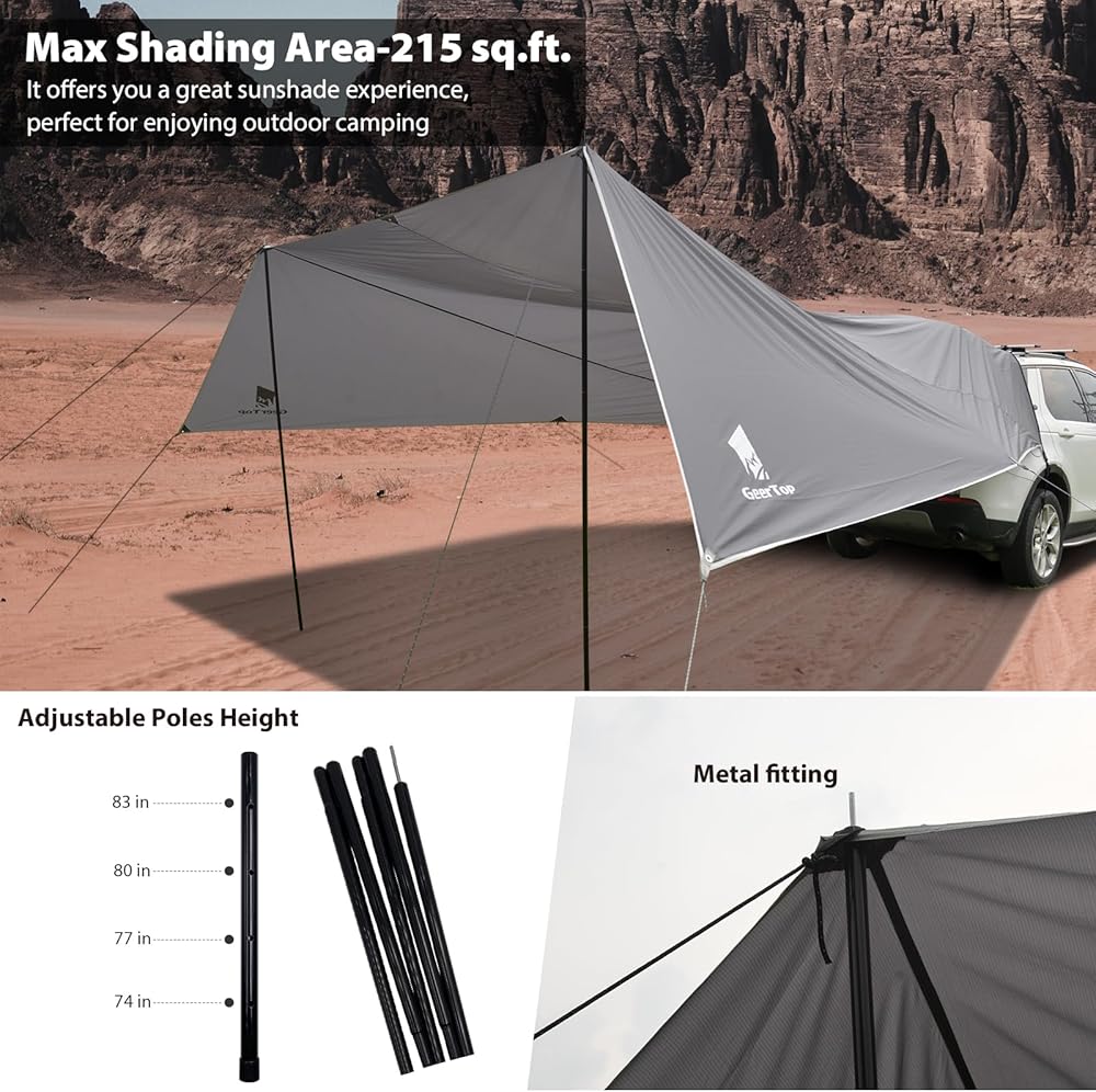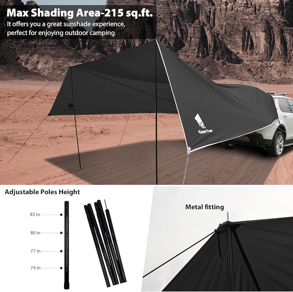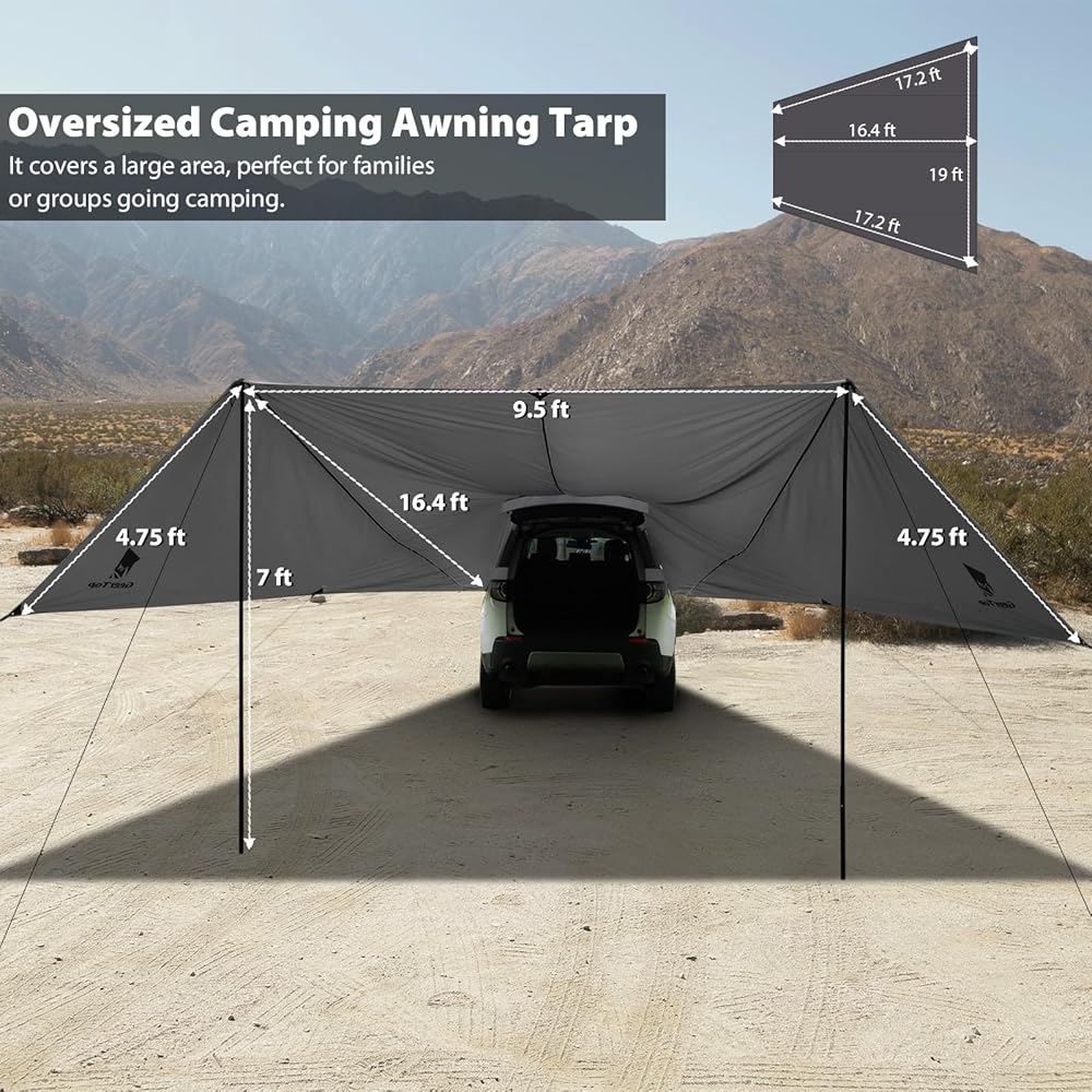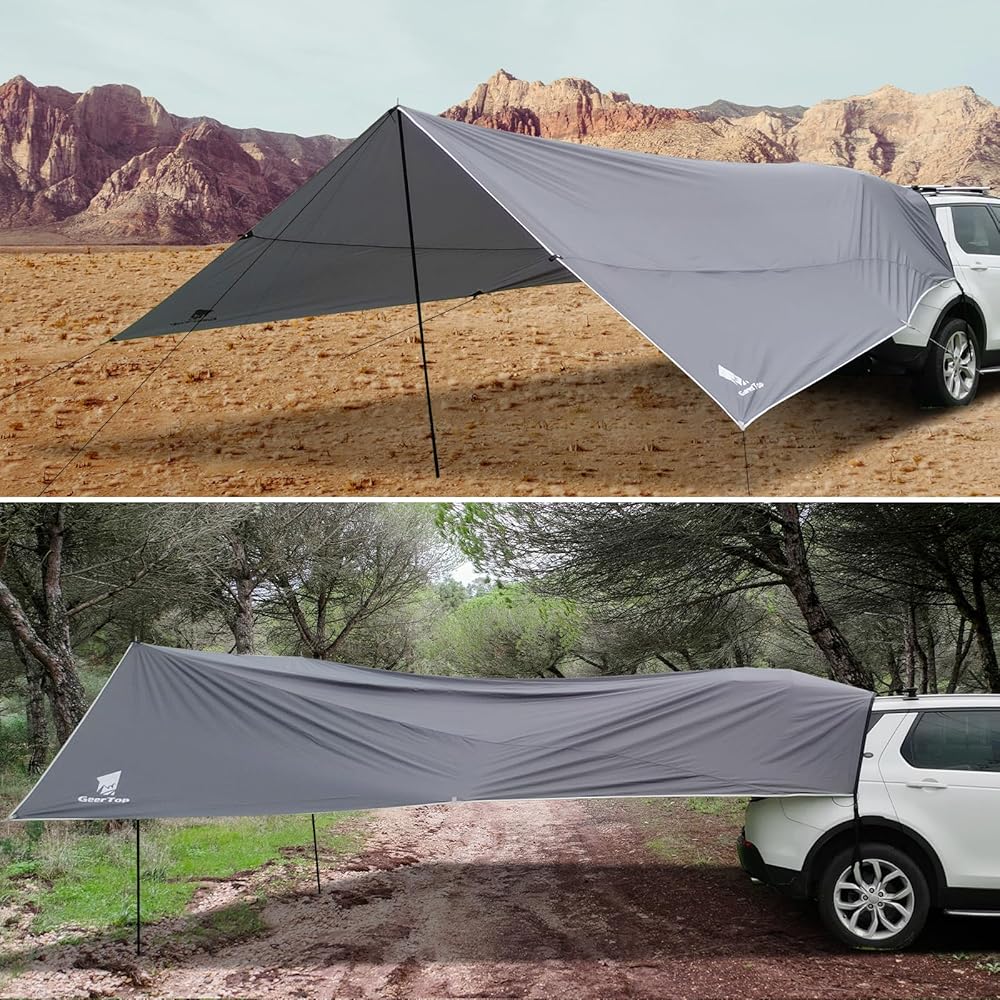 GEERTOP Large Car Awning Tarp for Camping Backpacking Tarp SUV Tailgate Truck Canopy Sun Shade Waterproof Outdoor Rear Vehicle Awning Shelter for Van, MPV, Campers
