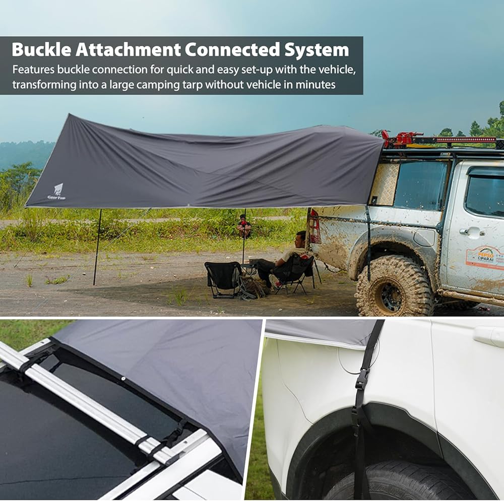 【Easy & Quick Setup】Features a buckles attachment system for easy connection to most Jeeps, SUVs, vans, trucks, and other vehicles; Spend less time fussing with your gear and more time enjoying the outdoors with friends and family
