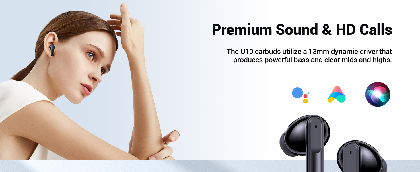 1.HiFi Stereo Sound. The in-ear wireless earbuds with13mm large speakers,ensures a pristine audio experience with depth and resonance.The Bluetooth headphones earbuds maintain crisp and balanced sound,complete with deep bass for an immersive surround sound that maximizes the overall soundstage.