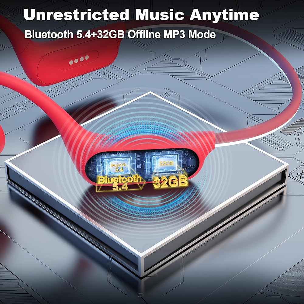 Wantek Open Ear Headphones,Bone Conduction Bluetooth Headphones with Built-in 32GB MP3 Player,IP68 Waterproof Swimming Headphone,8H Playtime for Running,Cycling,Gym,Workout