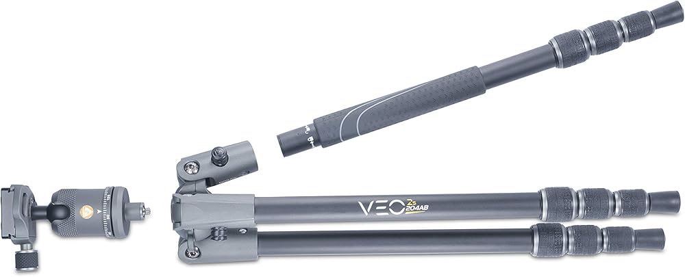 VEO 2 S 265CB is a compact and lightweight 26mm 5 section carbon fiber travel tripod kit with a built-in monopod leg. The kit includes a compact ball head optimized to carry camera capacities up to 17. 6 pounds. Designed for compact travel VEO 2 S 265CB provides a lot of versatility from low level shooting while being able to be extended up to a comfortable height of 59 inches. Attach the added smartphone holder and now you can easily record images or take static shake-free videos without having to hold on to your smartphone. You too can get into the shot! PRO DSLR, entry level DSLR, mirrorless with longer lenses, and smartphone cameras work well in both portrait and landscape modes. The Arca compatible ball head BH-50 is easy to use and its large lock/unlock knob allows for quick efficient setup. Like to use a monopod? The VEO 2 S 265CB is equipped with the TPU gripped leg that when coupled with the top plate from the center column and the ball head allows for quick seamless conversion to a monopod. This is a great feature for shooting sports action like kid's football games dance recitals and more. This great feature is ideal when a tripod is restricted and cannot be used. Your VEO 2 S tripod can travel anywhere' shooting at the beach in dirty conditions while taking landscape images or seizing unexpected moments of wildlife. Clean-up is a snap too! The new open to click twist leg locks allow for easy fresh water rinsing after working in most demanding environments. Shoot low angles giving your subjects power by using the included low angle adapter. Every VEO 2 S comes complete with tripod, ball head, smartphone holder, low angle adapter, spikes, Allen wrenches, and carrying bag.