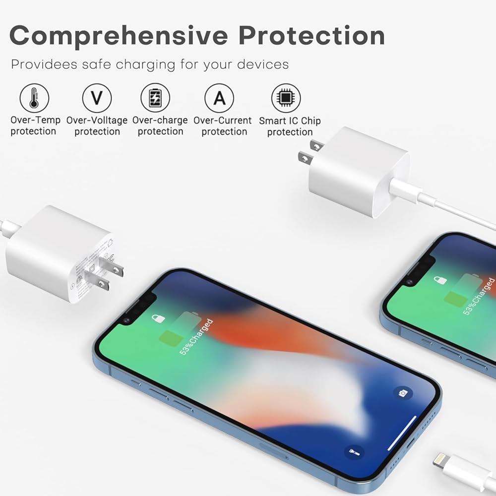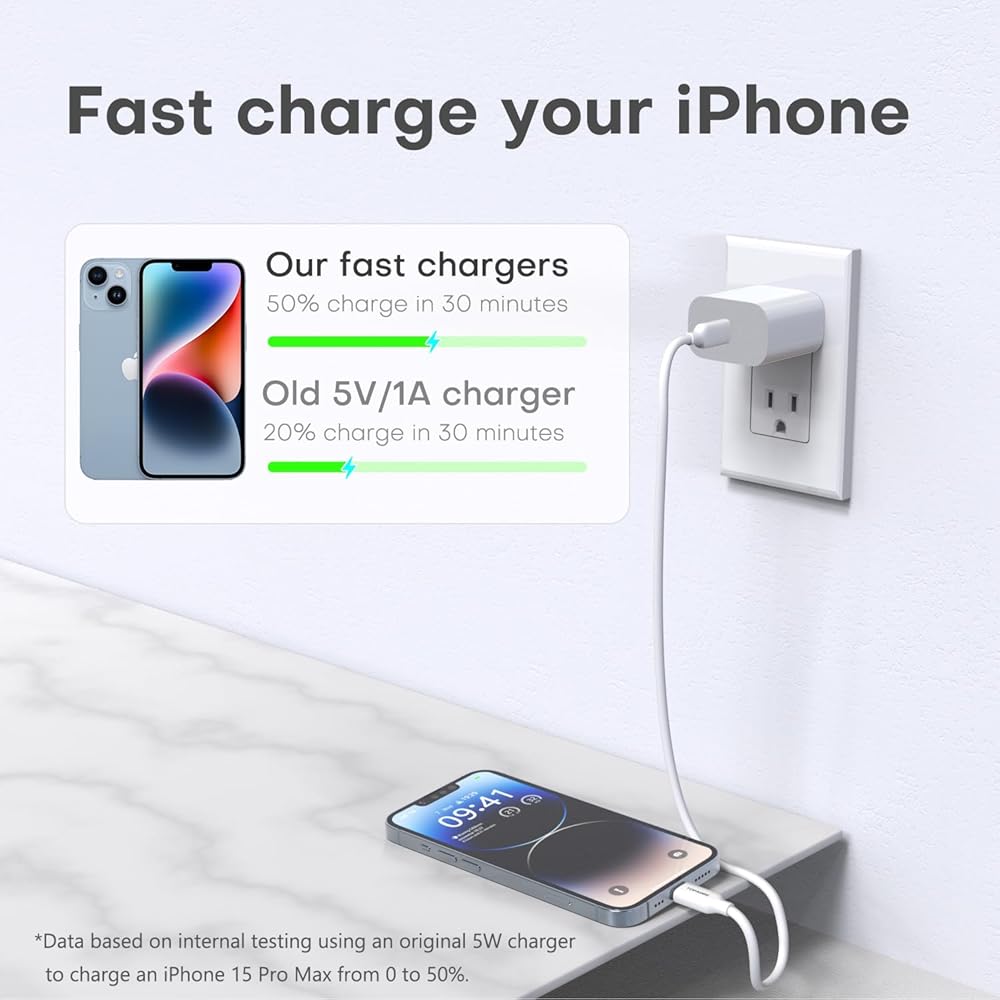 【4-Pack Fast Charging】Offers fast and efficient charging up to 3X faster than a 5W charger. Charge your Phone up to 50% capacity in just 30 minutes with the original cable. Cable not included, only 4 Chargers.