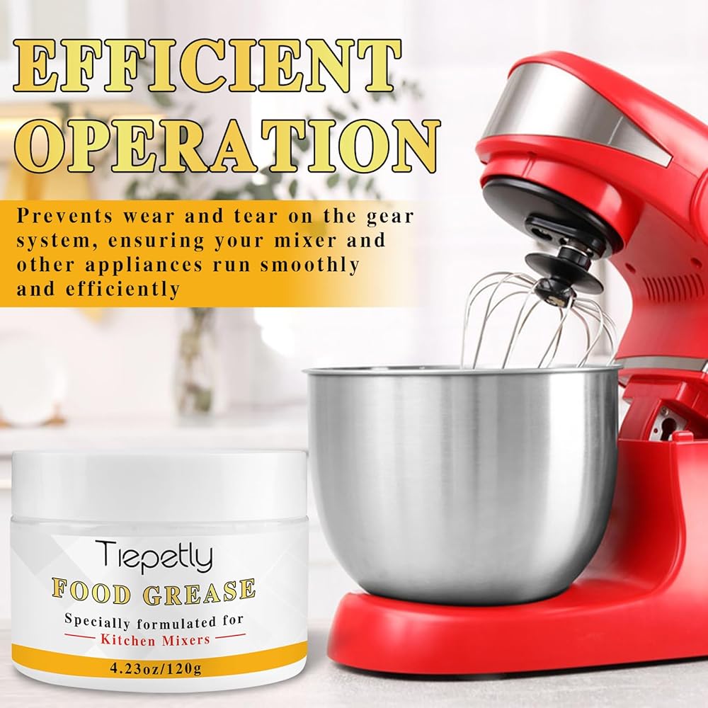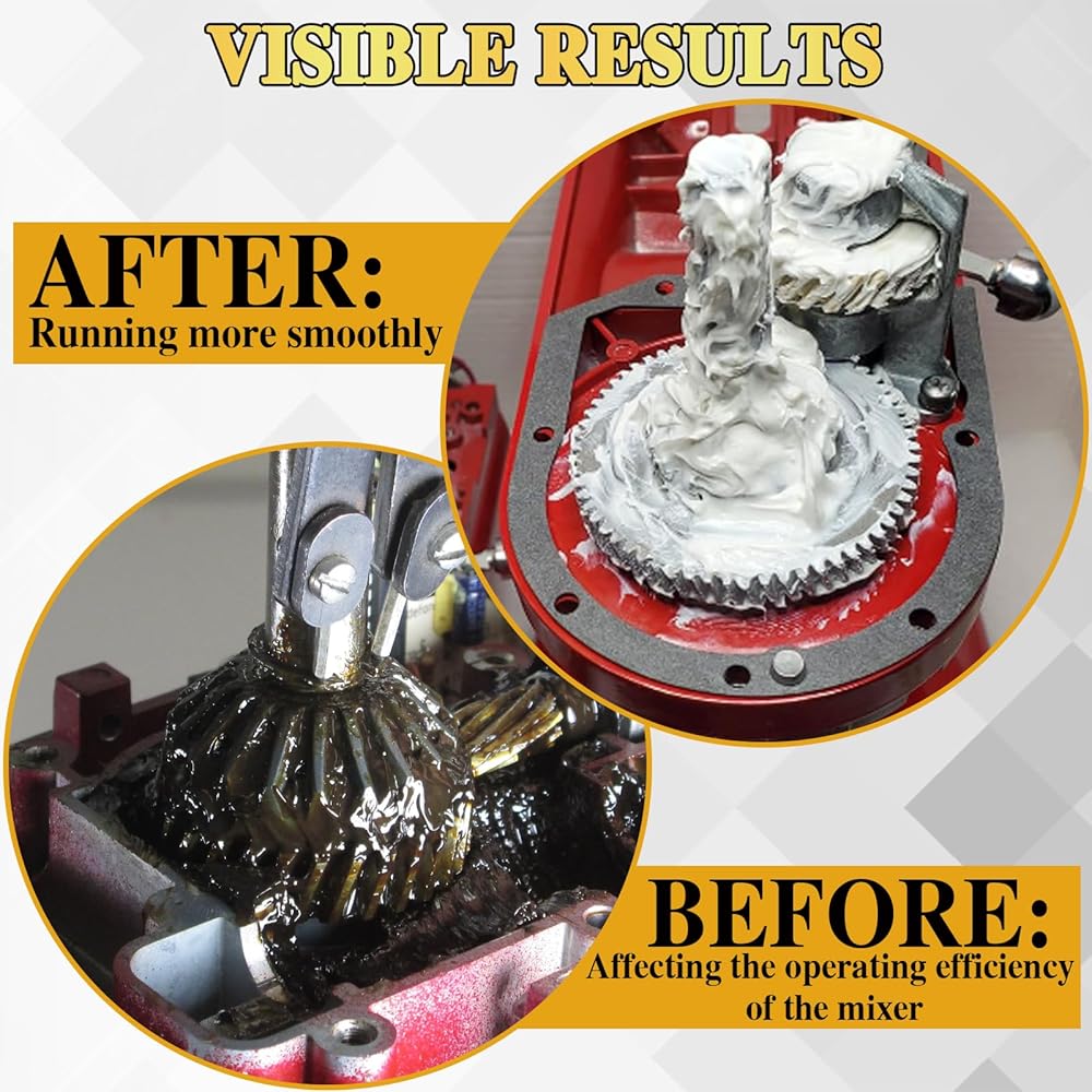 REGULAR REGREASING: Minimize wear-and-tear on your mixer gear parts by regularly replacing the food grade grease. Insufficient food grade lubricant grease can cause damage, so keep your mixer running smoothly by regreasing as needed.