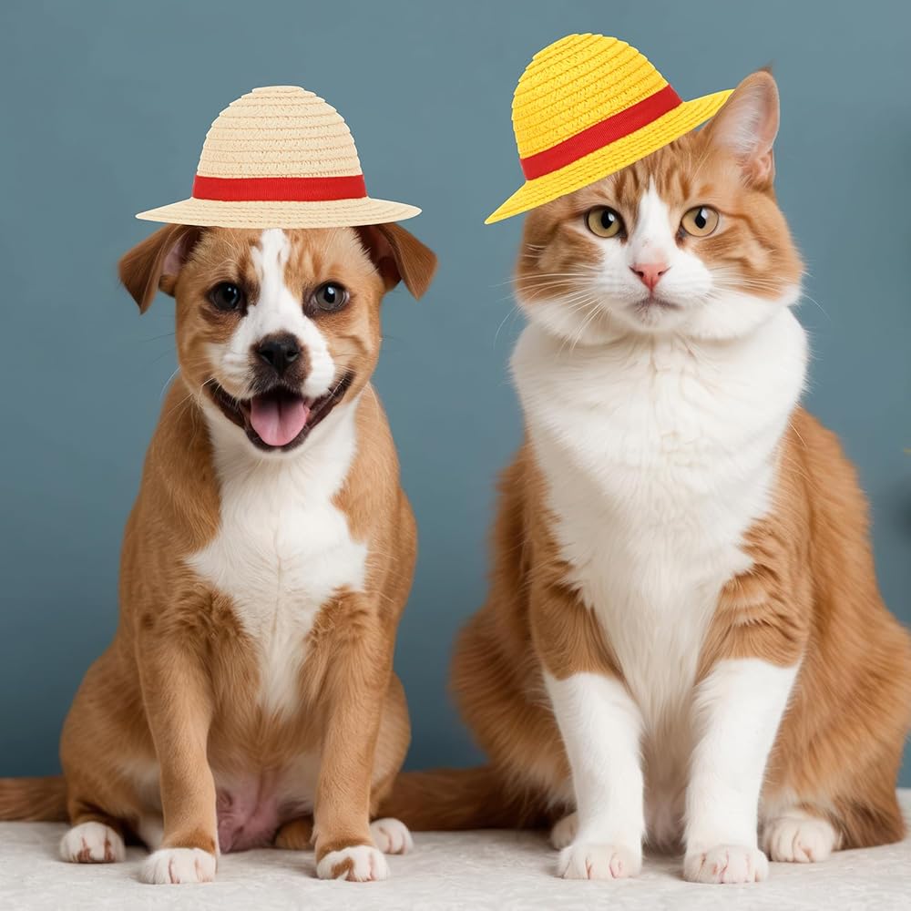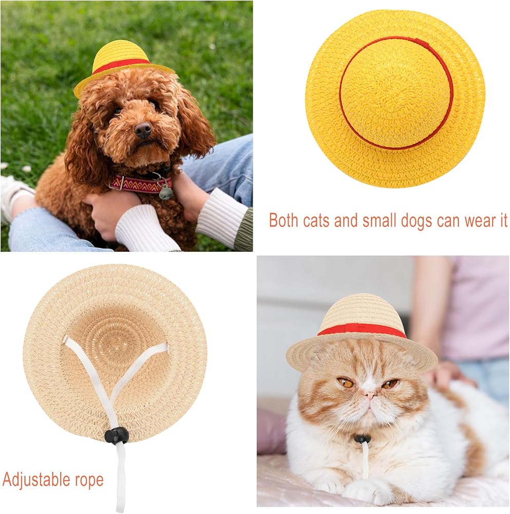 Pet Straw Hats with Adjustable String: The strap of the hat is adjustable, easy to put on and take off as well; Soft and comfortable, light and had no sense of restraint for your pet.
