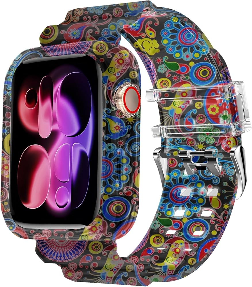Introducing the DABAOZA Compatible Clear Apple Watch Band, designed for various Apple Watch Series models ranging from 1 to 9 and SE. This watch band is made of lightweight resin material, featuring a modern sport style with a tang buckle closure for a secure fit. The band is transparent, allowing the color of your Apple Watch to shine through. The glitter embellishment adds a touch of fashionable flair, making it an ideal accessory for women. This watch band is water-resistant, perfect for active lifestyles. It's also designed with a graphical print pattern, adding to its unique and stylish design. The DABAOZA Apple Watch Band is compatible with 38mm, 40mm, 41mm, 42mm, 44mm, 45mm, and 49mm case sizes. Experience the perfect blend of style, comfort, and durability with this DABAOZA watch band for your Apple Watch.