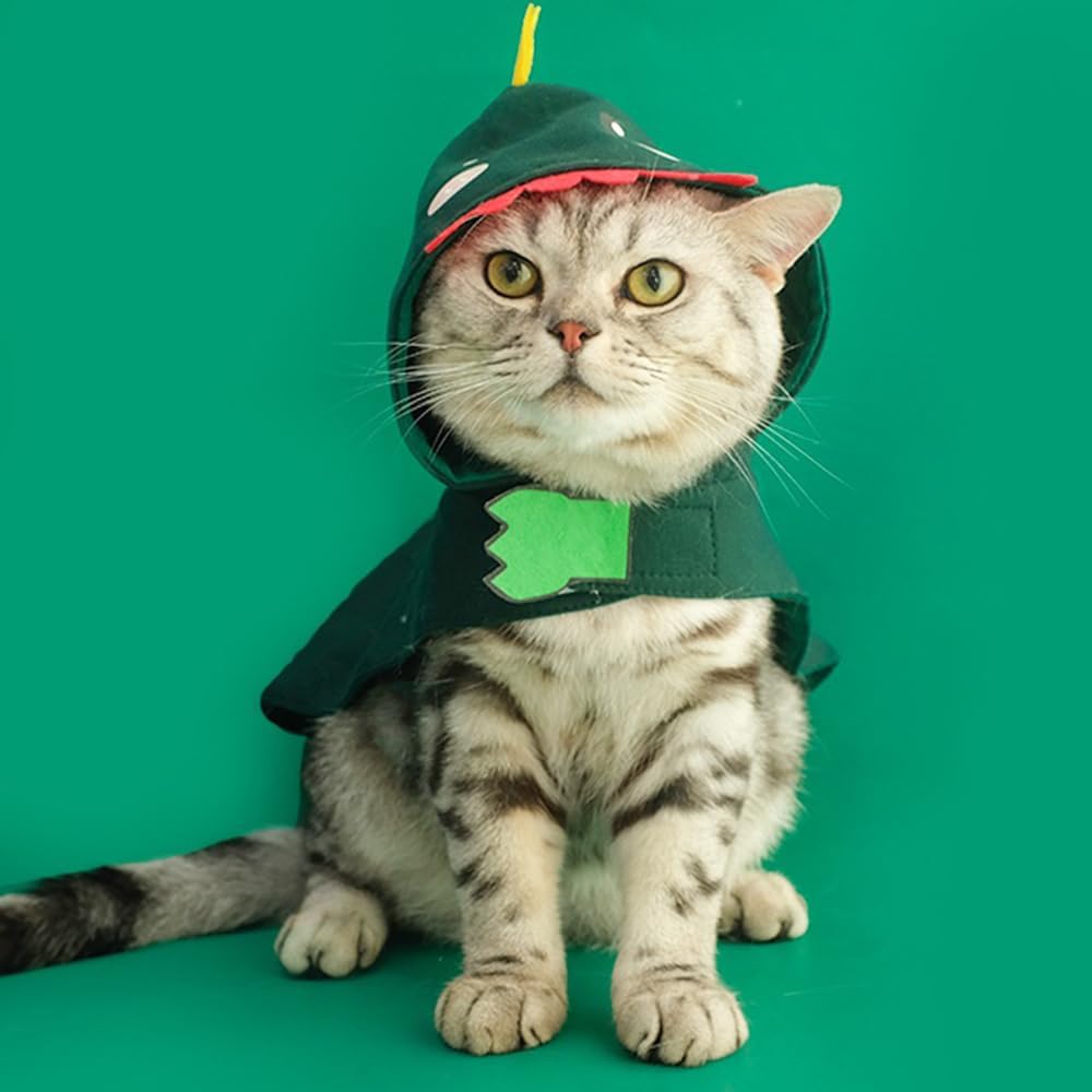 • [ Soft material ]: Green Dino cat cloak is made of soft polyester fabric, comfortable and lightweight, also can keep your pet warm and make them playing without any burden in this dinosaur pet cape