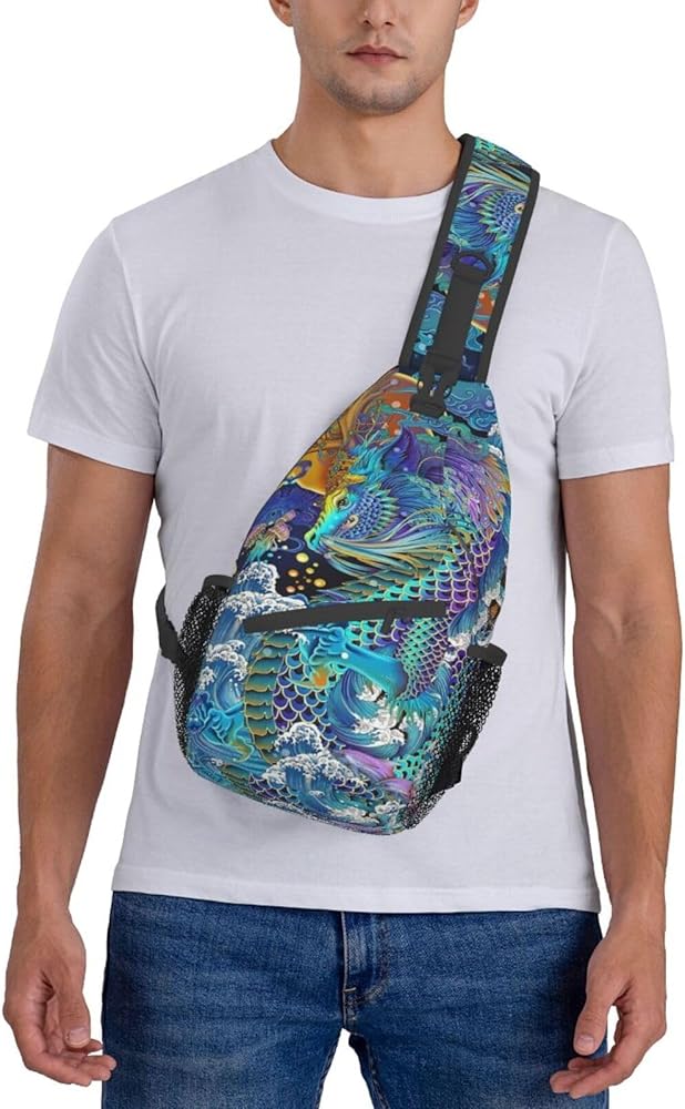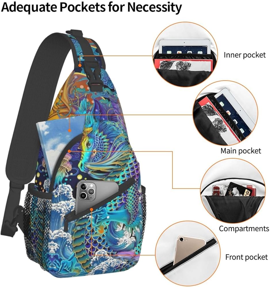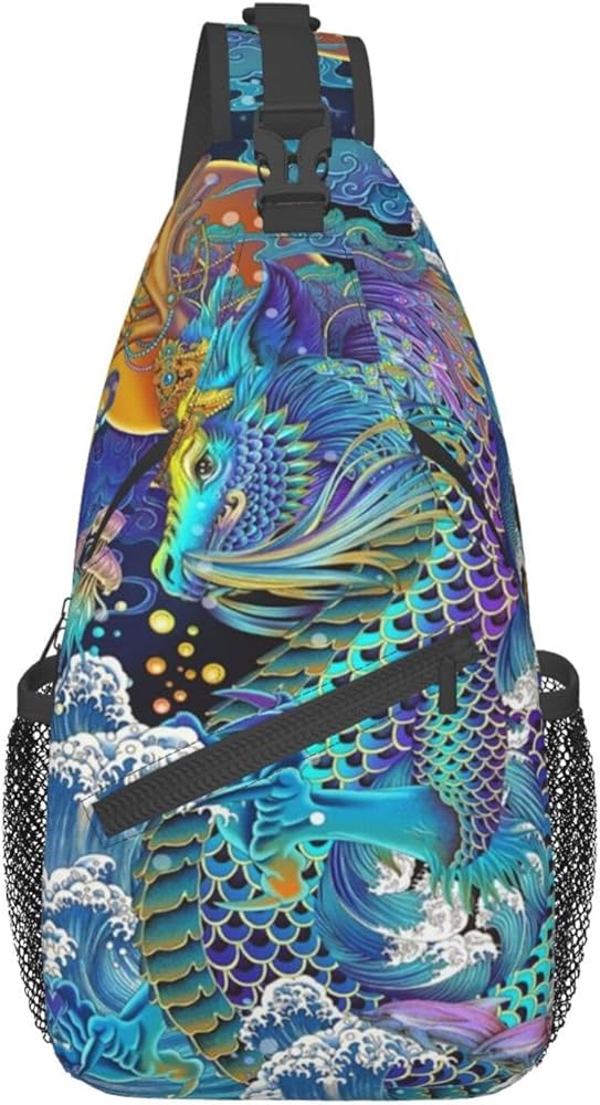 Cool Chinese Dragon Sling Bag,Casual Crossbody Backpack Shoulder Chest Bag for Women Men Travel Hiking Daypack