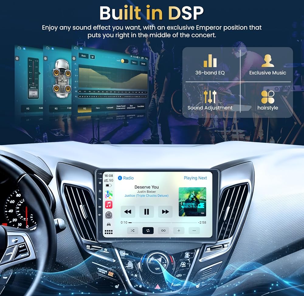 for Hyundai Veloster Radio 2011-2017: 9" Touchscreen Stereo Replacement-Wireless CarPlay Android Auto Bluetooth GPS Navigation WiFi FM DSP SWC+Backup Camera