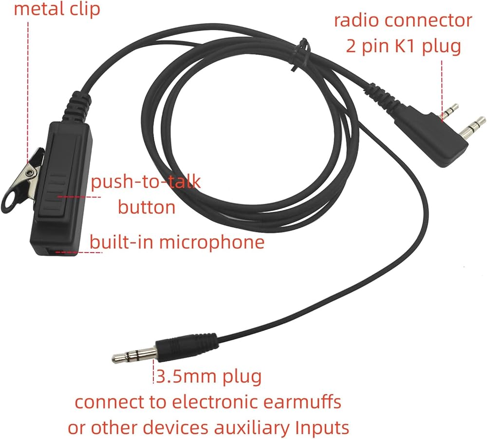 PZYPYM Ptt Mic Adapter 3.5mm Aux 2pin Cable Connector for GA Headphone Noise Cancelling Walkie Talkie Headset UV5R RT21 RT22 BF-F8HP