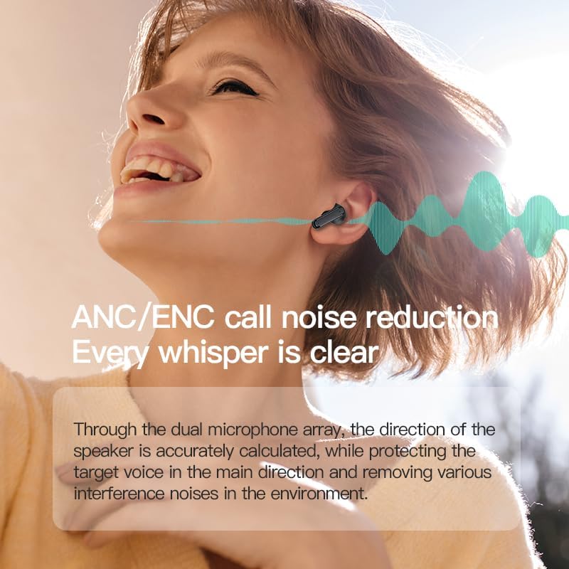 【ANC/ENC call noise reduction】Every whisper is clear. Broadband deep noise reduction, blocking up to 99% of extemal noise, fearless of noise, enjoy life in peace.