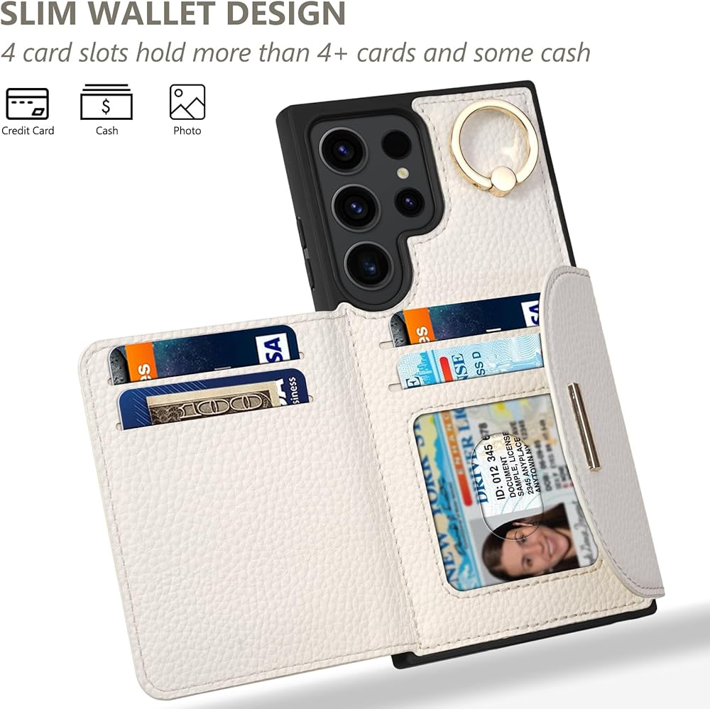 Keallce Case for Samsung Galaxy S24 Ultra 6.8'' Flip Leather Wallet Case with RFID Blocking Card Slots, Stand Ring Kickstand, Folio Cover Women Ladies Compatible with Samsung S24 Ultra Beige