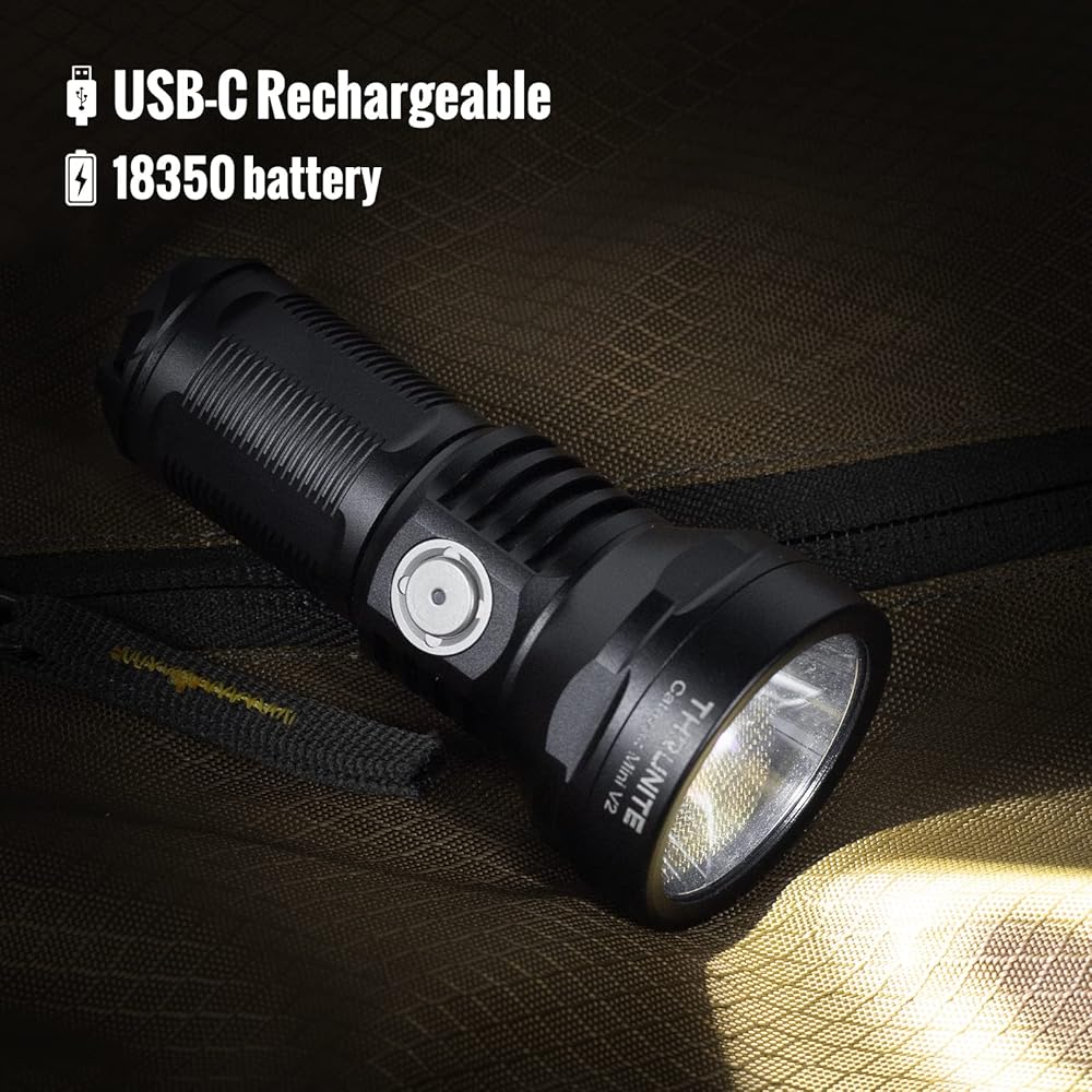 ThruNite Catapult Mini V2 Max 1108 Lumens Flashlight SFT40 LED USB-C Rechargeable Handheld EDC Flashlights Searchlight Black, Cool White