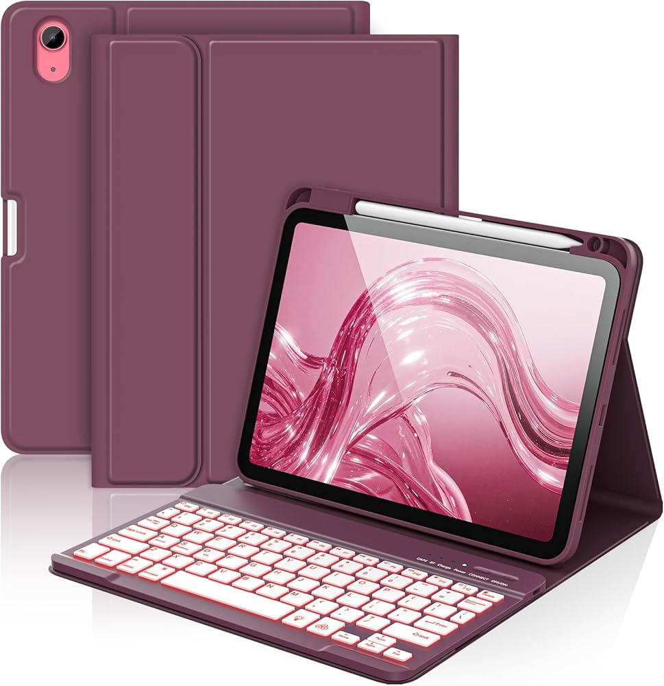 Backlit Keyboard:10.9 inch of ipad case 10th generation with rechargeable backlit keyboard,7-color backlight with 3 adjustable modes to bring you different visual enjoyment and comfortable typing experience,which easily use in a dark environment.10th gen of ipad keyboard uses the most advanced Bluetooth 5.0 technology,which dramatically improves the speed and quality of connection transmission,increases the effective working distance and saves energe