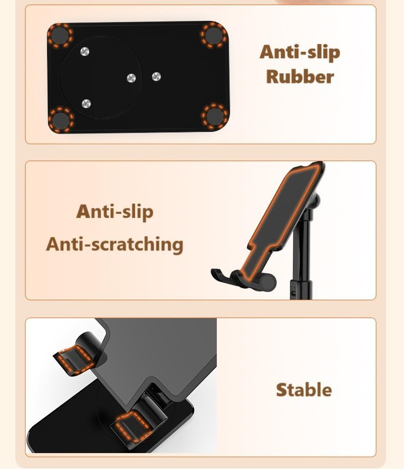 Secure Grip with Anti-Slip Silicone Pad: Say goodbye to worries about your device slipping or getting scratched. Our phone stand is equipped with an anti-slip silicone pad that provides a secure and stable grip, keeping your device firmly in place while also protecting it from scratches and damage.