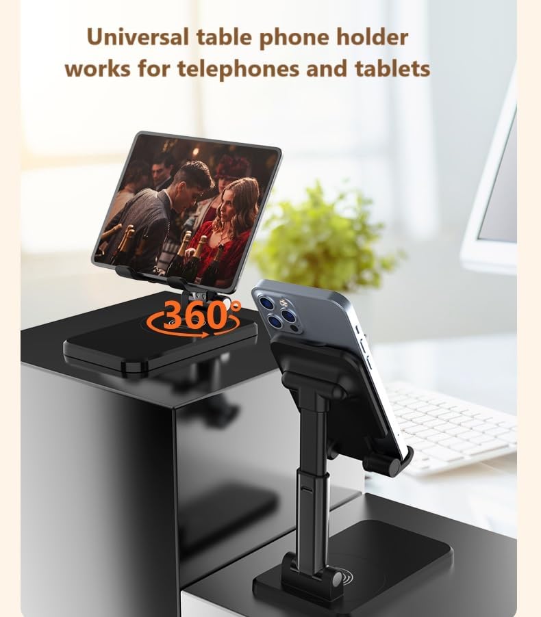 Wide Device Compatibility: Our universal table phone holder is compatible with a wide range of devices, including telephones and tablets ranging from 4.7 to 12 inches. Whether you own an Apple iPhone or an Android device, including models like iPhone 15, 15 Pro, Galaxy S22, S21 Ultra, and iPad mini, our stand caters to your diverse device needs.