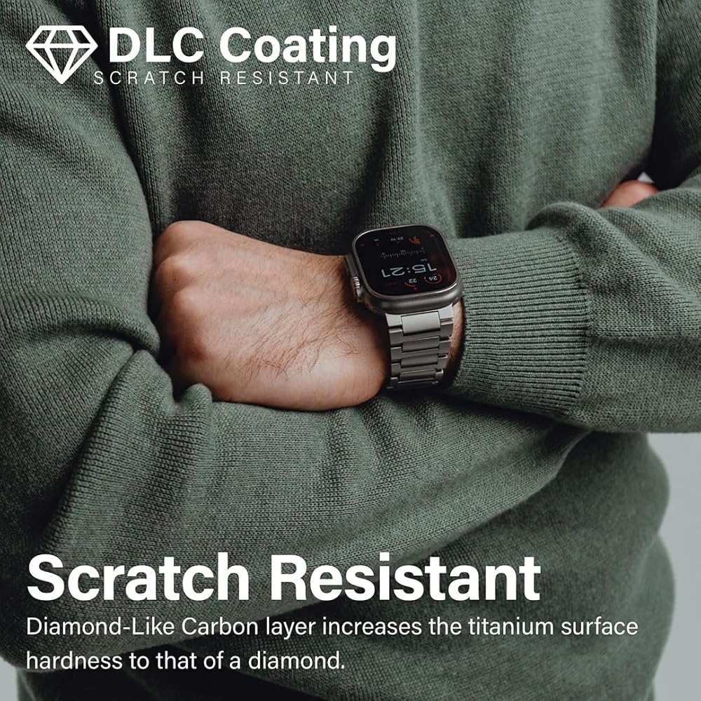 Built to Last: Crafted from over 99% pure titanium, our titanium band for apple watch offers exceptional strength, lightweight comfort, and durability. Engineered to resist scratches with DLC (Dimond-Like Carbon) coating scratch resistant, it maintains its beautiful finish over time, making it ideal for an active lifestyle.