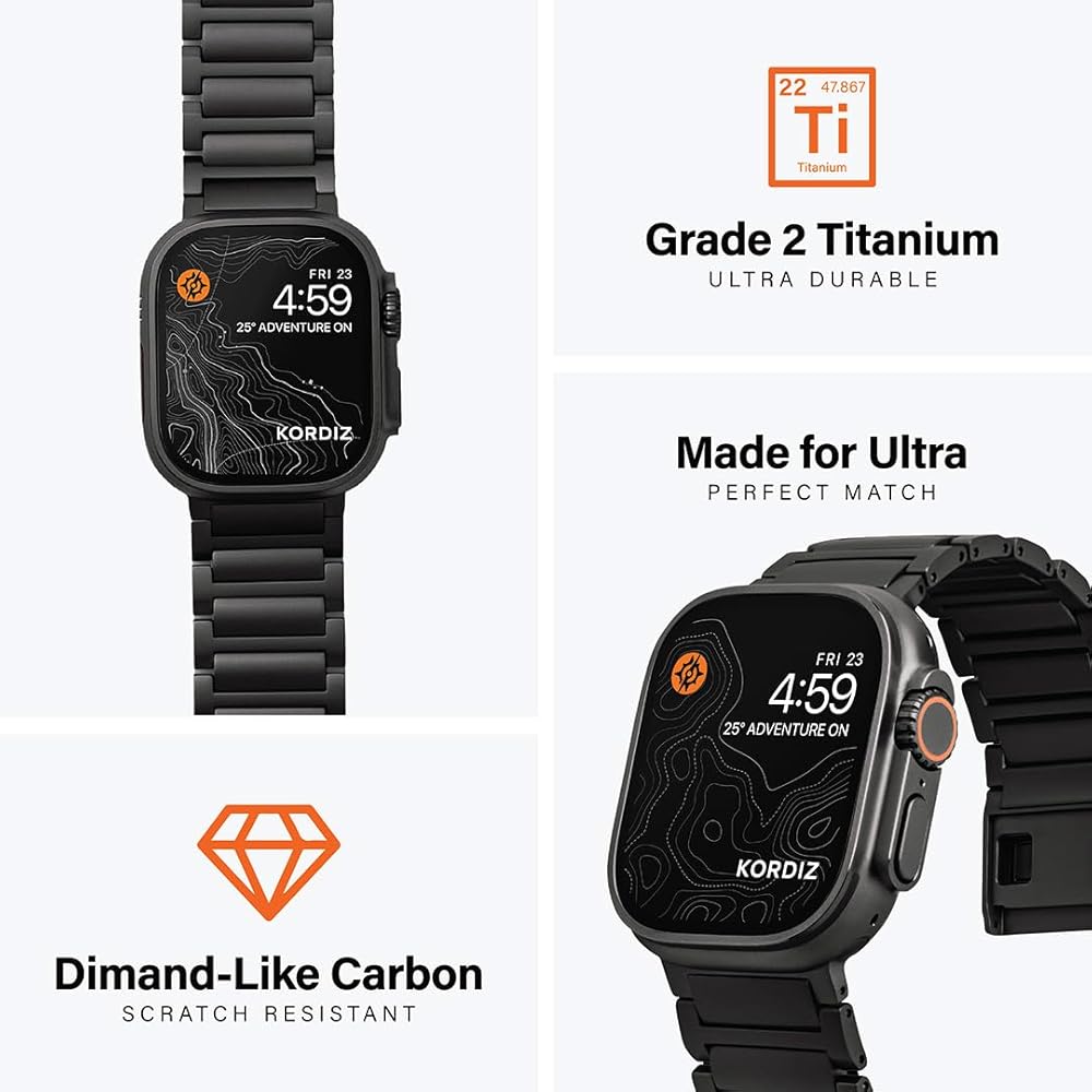 KORDIZ Titanium Watch Band TX Pro (Max) - Fits Apple Watch ULTRA 3, ULTRA 2/1 [49mm] and Series 11, 10 [46mm] - Adjustable Titanium Apple Watch Band - Butterfly or Magnetic Clasp - DLC Scratch Resistant - Premium Color Matching Band - Comfortable grip - R