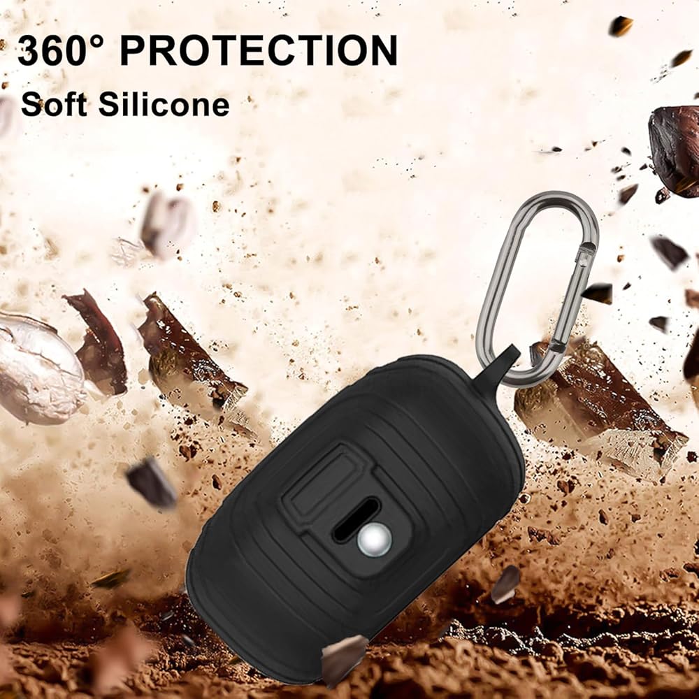 [Upgrade] HXFRTYU Case Compatible with EarFun Air Pro 3, Soft Silicone Shockproof Protective Cover with Carabiner Accessories, Black