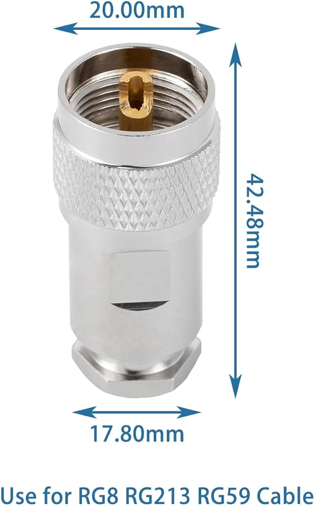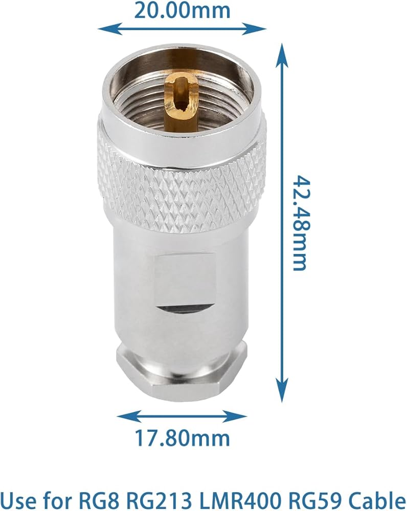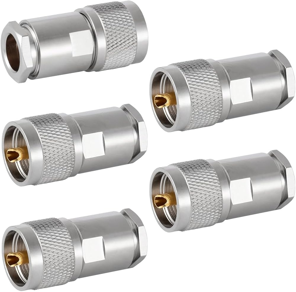 - Product Name: 5PCS PL259 Male Plug Five-piece Set Crimp RF Coax Connectors Adapter 50 Ohm for RG-213 LMR-400 RG8 RG59 Low Loss Coax Cable;