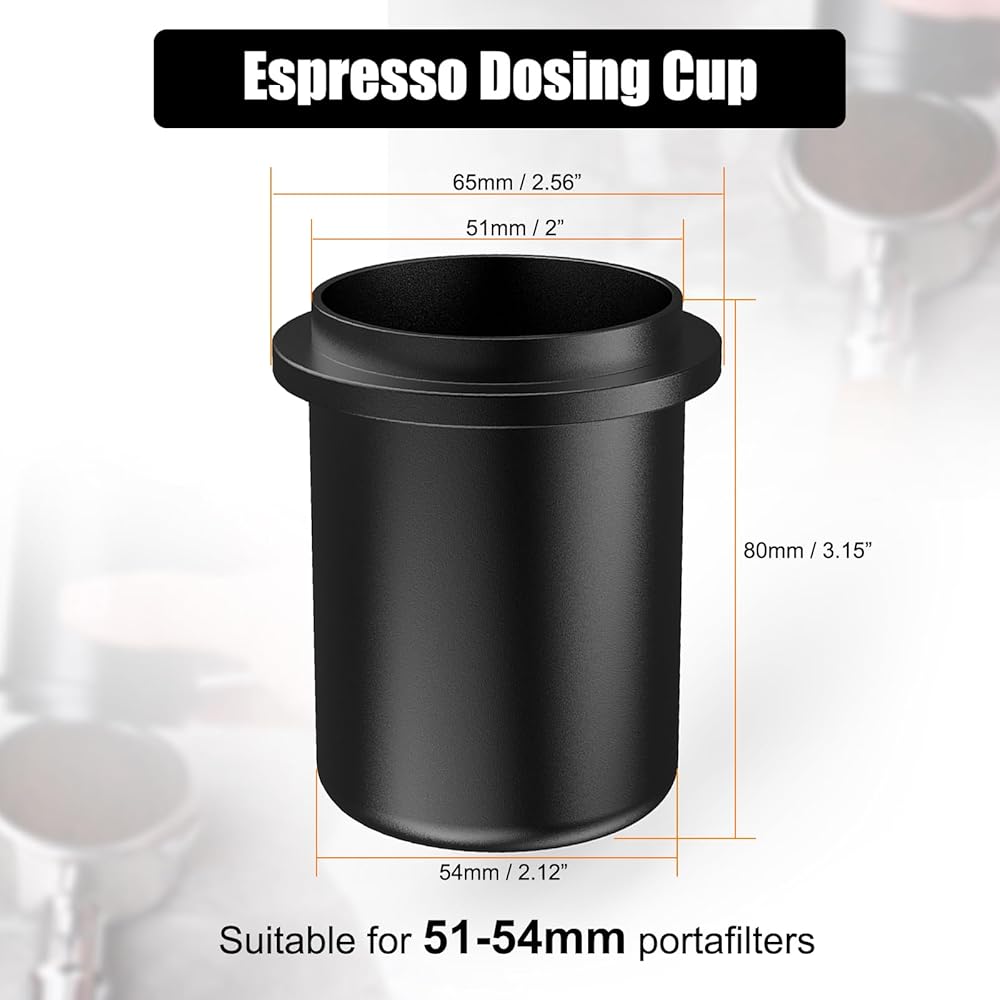 Wide Mouth Design - The mouth of the dosing cup fits perfectly with most 51mm to 54mm portafilters and grinders on the market. The thick-walled opening provides better coverage of the puck screen, preventing spills and minimizing clutter. It is a great helper for baristas when making espresso