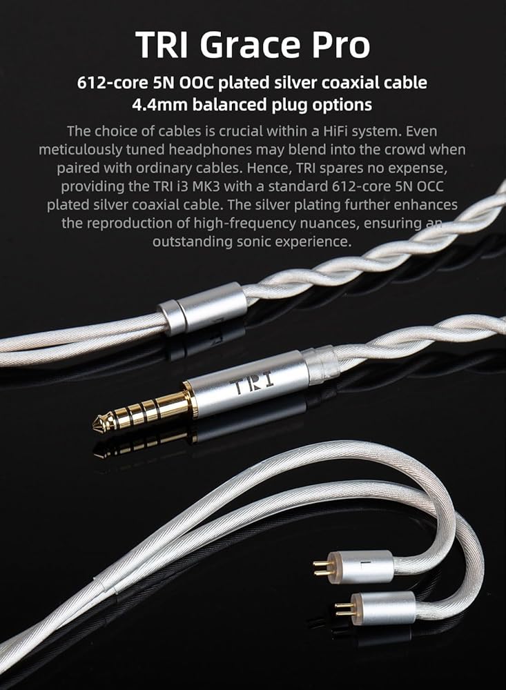 【Low Frequency 10MM Beryllium Diaphragm Dynamic Unit】In order to reproduce a wide sound field like TRI i3, TRI redesigned the entire acoustic structure of i3 MK3 and rebuilt this flagship 10MM Beryllium diaphragm DD, Beryllium driver is very suitable for hybrid driver IEM, lighter diaphragm response is faster than ordinary driver, and i3 MK3 takes the advantages of this driver and makes it sound like it comes from one driver. The bass of i3 MK3 is linearly attenuated, which means the in ear headphones wired have smooth bass, the sound field will be full of sub-bass but not too much, soft and clear.