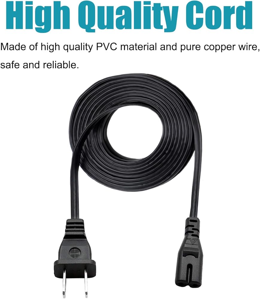 Replacement Figure 8 AC 2 prong IEC C7 125V 10A / 7A power cord cable