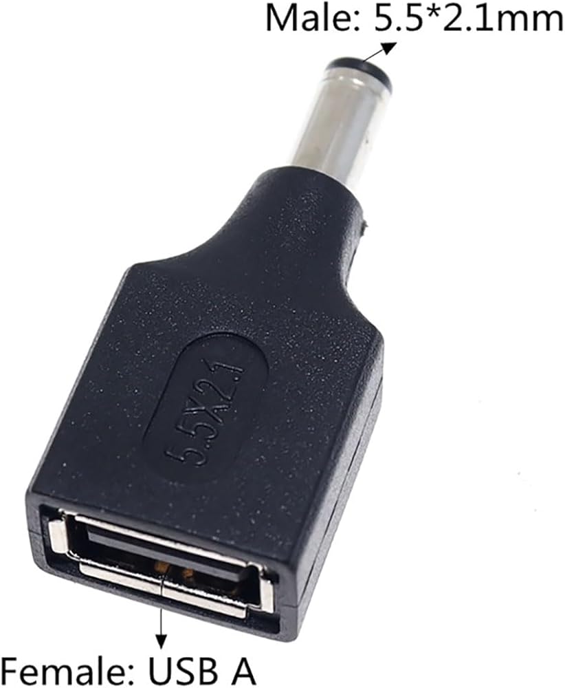 5PCS Black USB to DC Adapter USB 2.0 A Female to DC 5.5x2.1mm DC Male Connector Charge Barrel Jack Power Adapter for Small DC or USB Electronics Charging