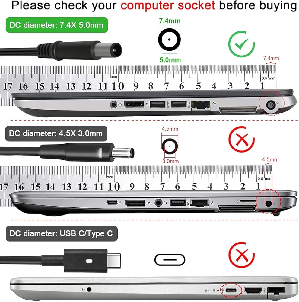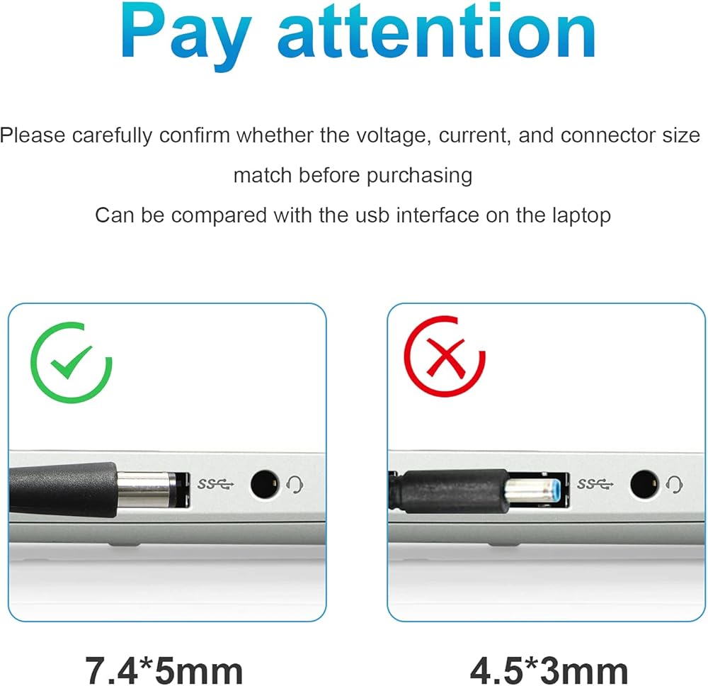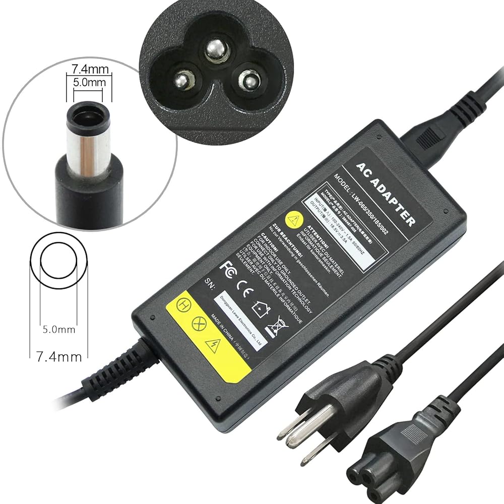Input : AC 100-240V 1.5A 50/60 Hz, Output : DC 18.5V 3.5A 65W, Connector plug Tip Diameter: 7.4x5.0mm.