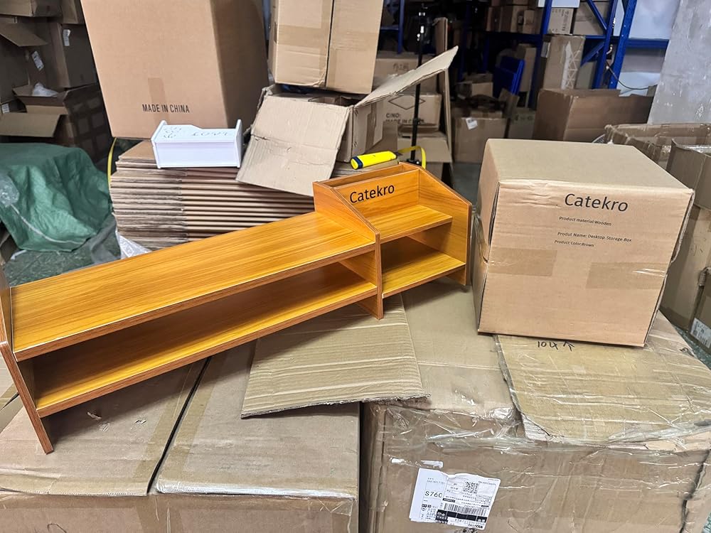 Catekro Monitor Stand Riser, 2 Tiers Wood Monitor Riser Stand with Storage Organizer, Multi-Purpose Desktop Organizer Riser for Computer,Laptop,Printer(Brown)